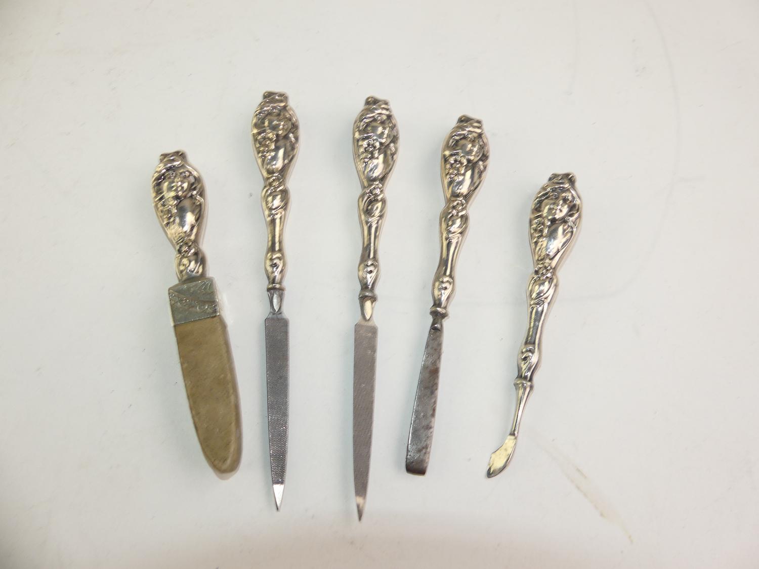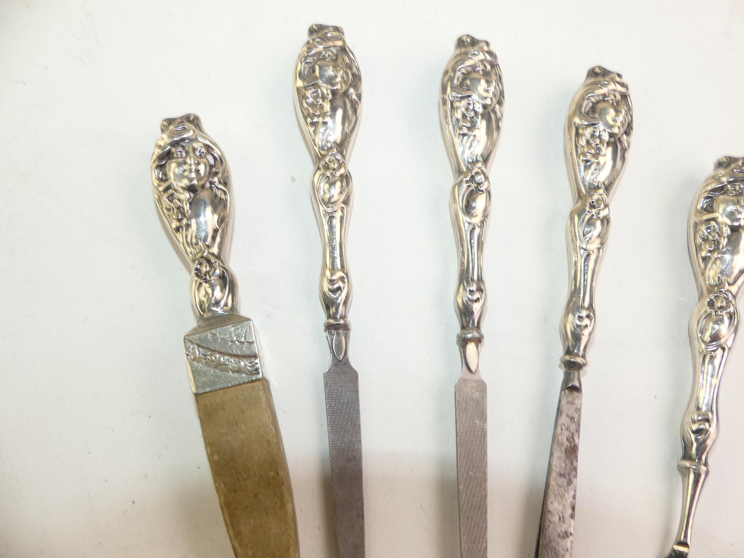 5 pc sterling silver art nouveau dresser items