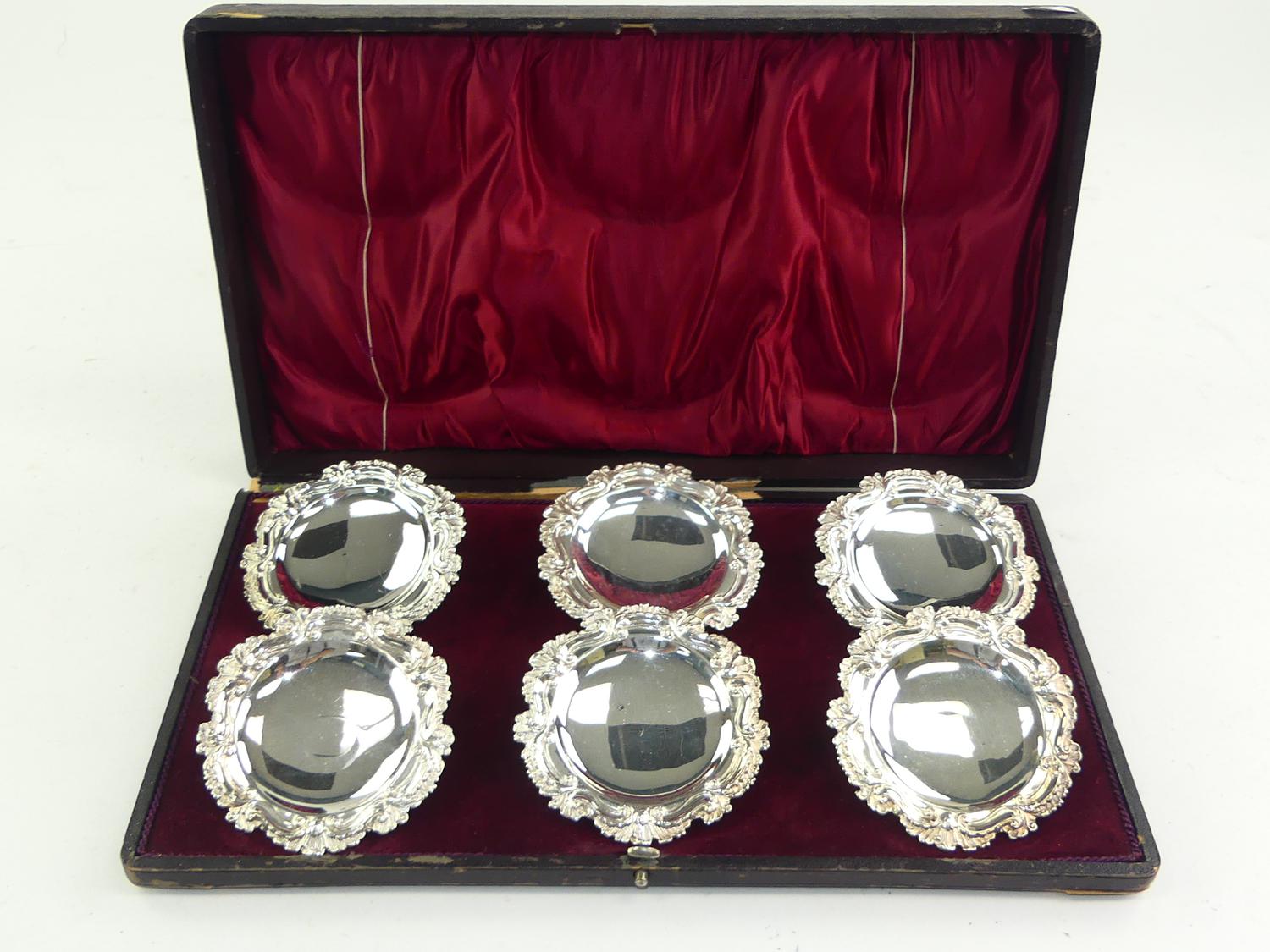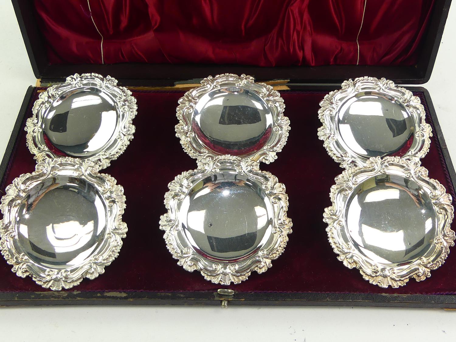 cased set of six walker and hall sheffield silver plated place card holders