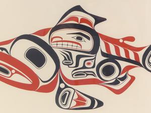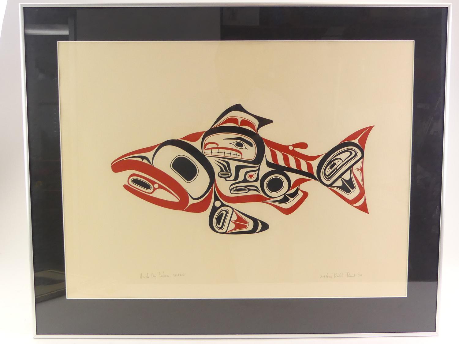 bill reid(1920-1998), silkscreen, d. 1924, 18 1/2" x 24", "haida dog salmon"