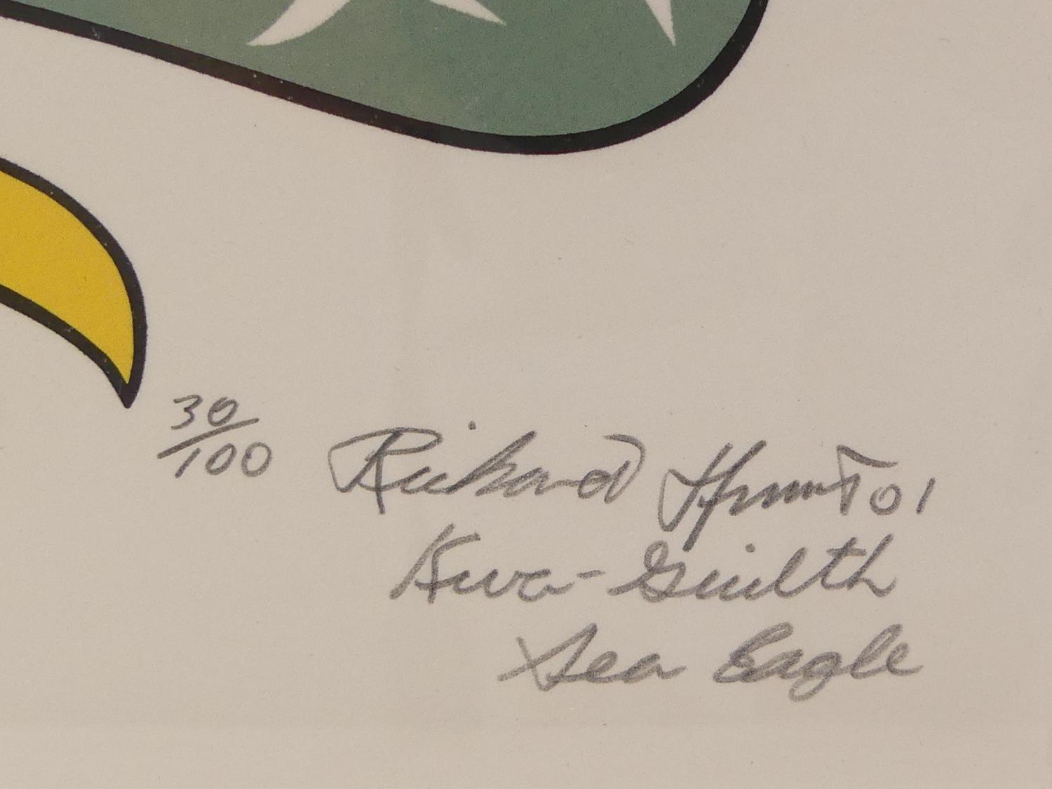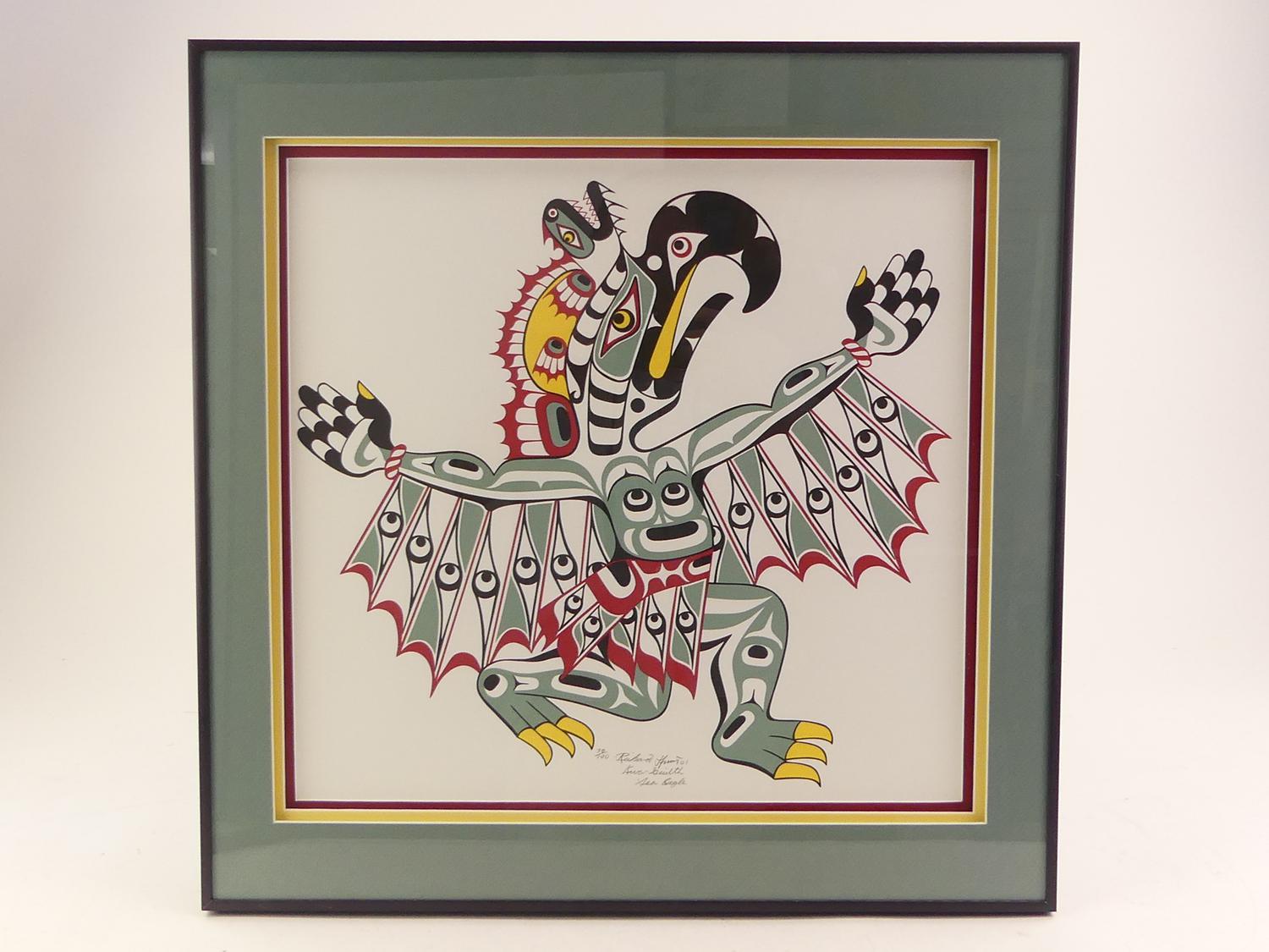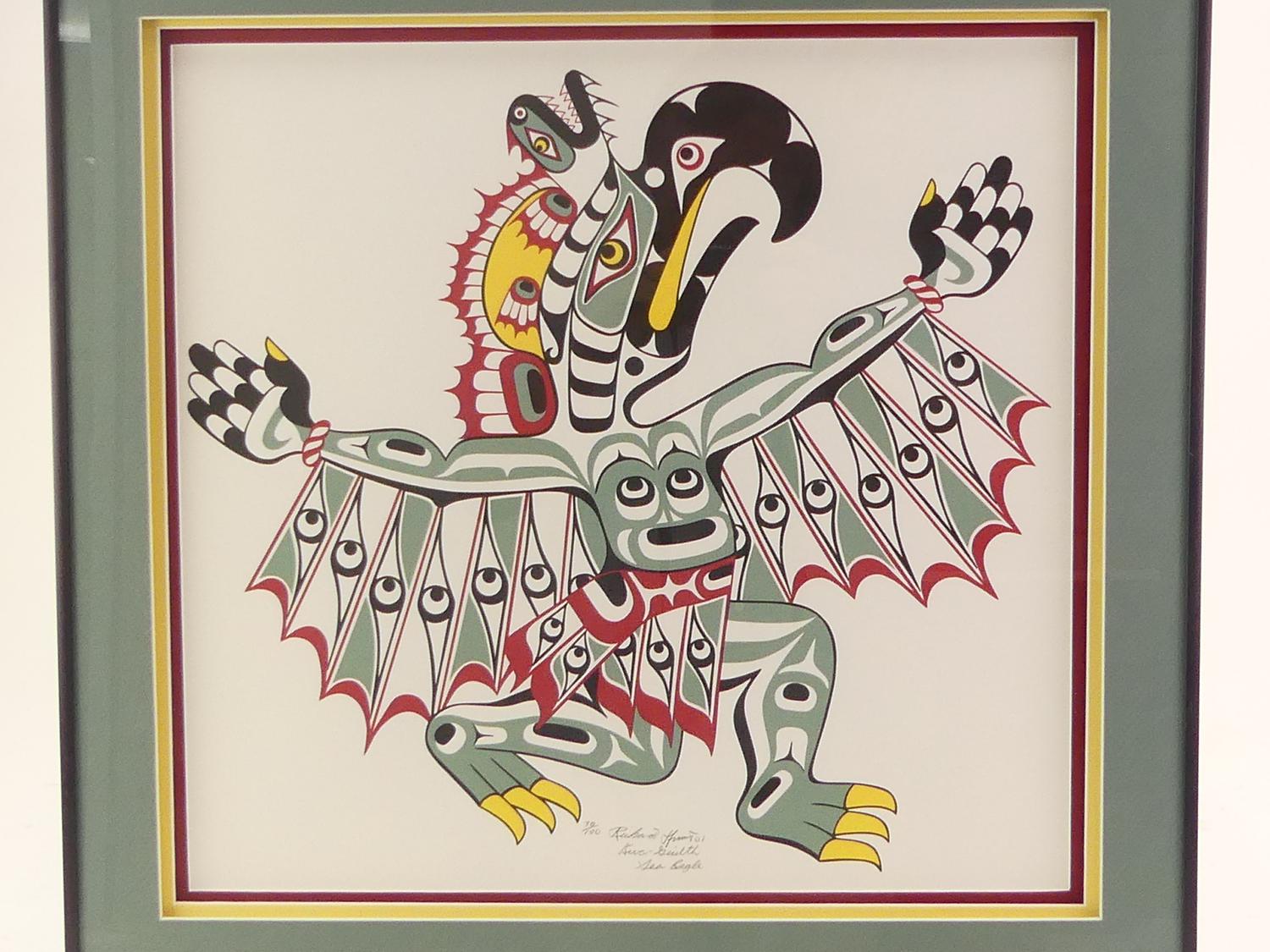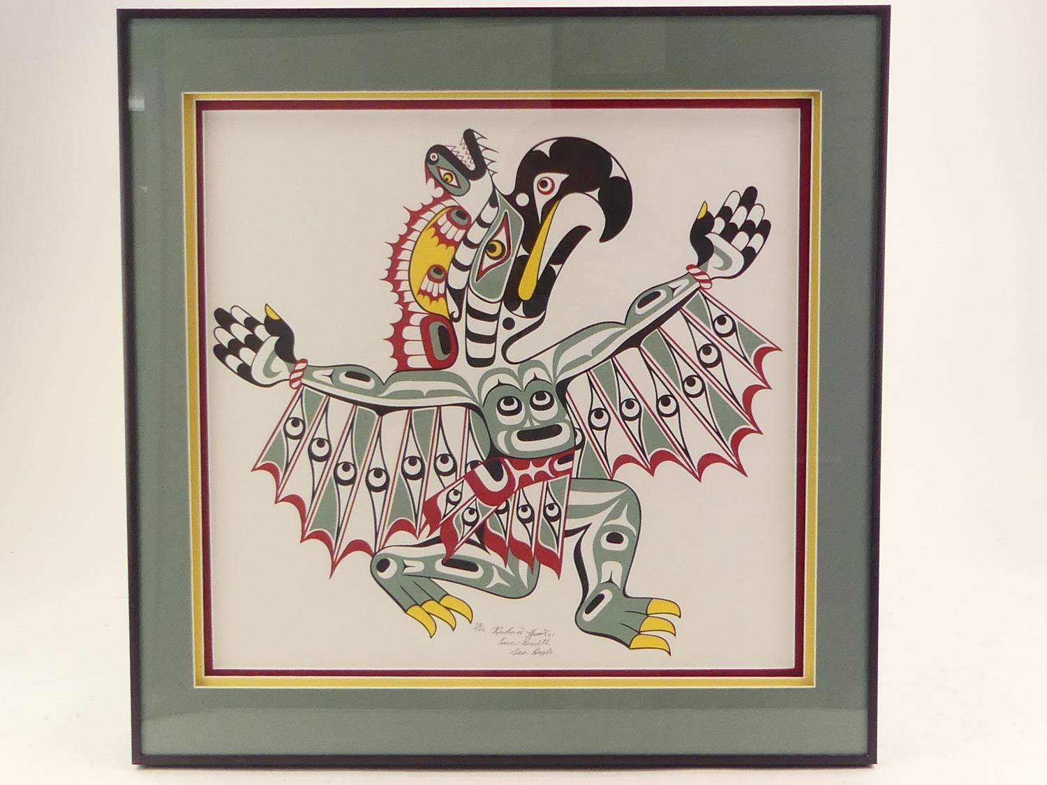richard hunt(b. 1951), silkscreen, #30/100, d. 2001, 18" x 19", "kwa-gailth sea eagle"
