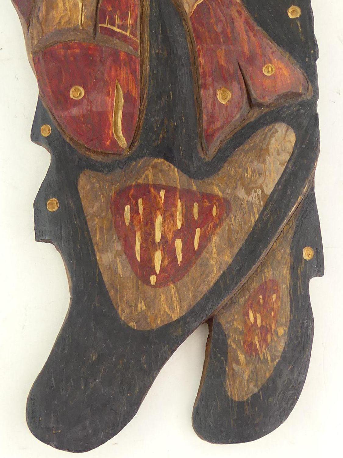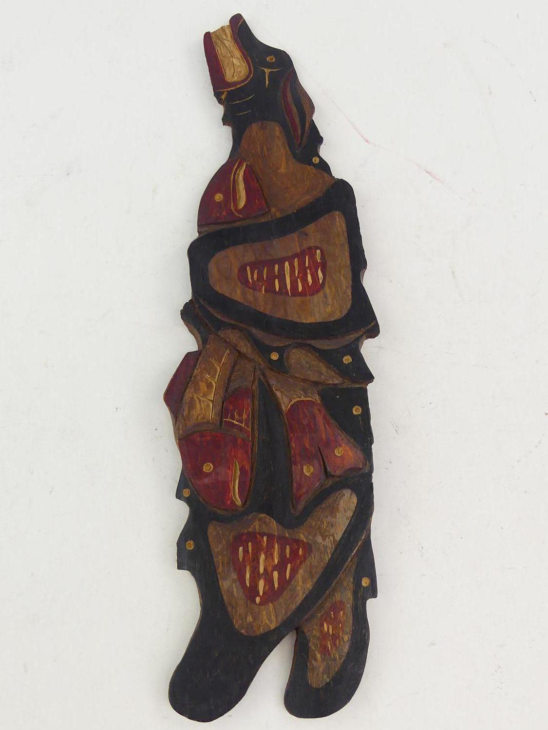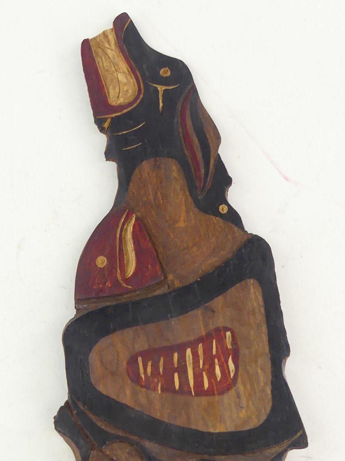 carved and painted red cedar bark, "bear" plaque, ht 16 1/2"
