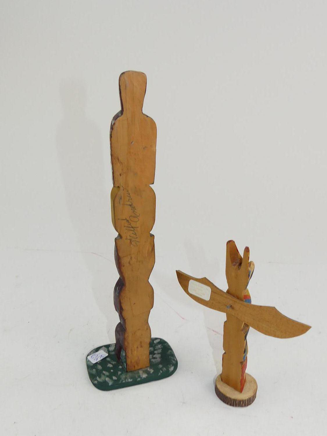 two carved and painted totems, c. 1960, ht 12" and smaller