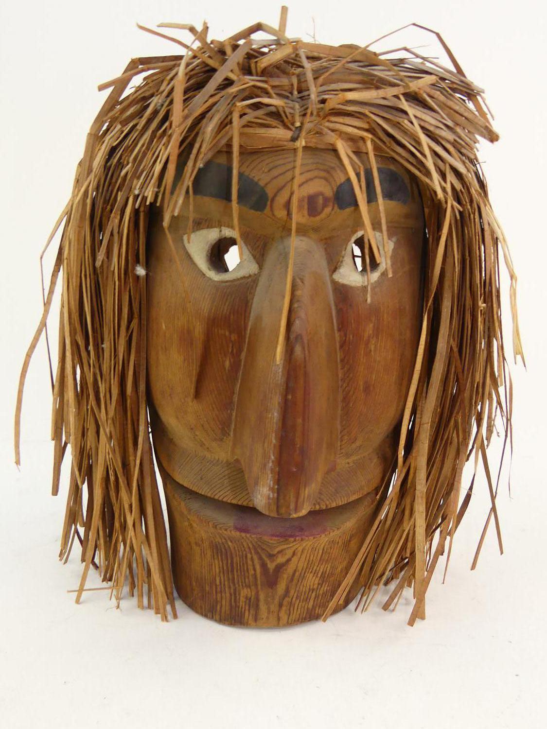 west coast native carved red cedar mask, ht 13"