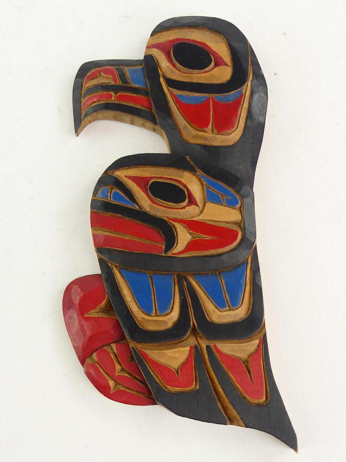 carved and painted "eagle & killer whale" plaque, ht 9 1/2"