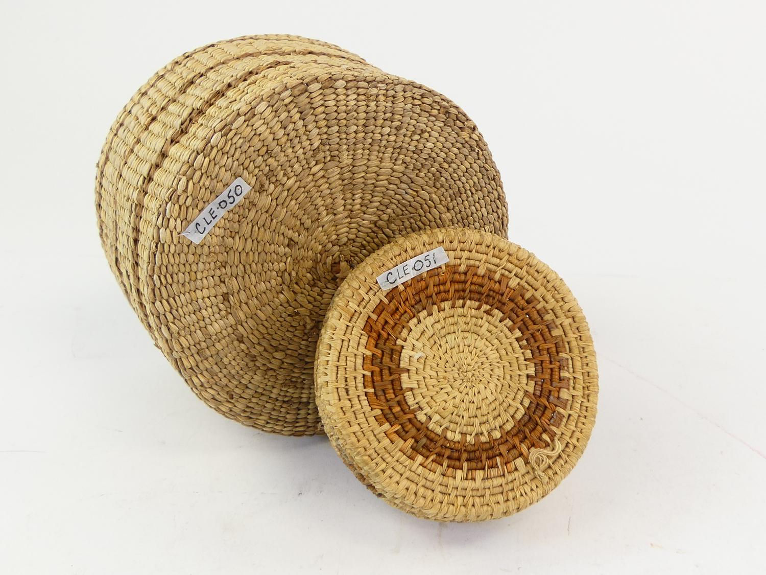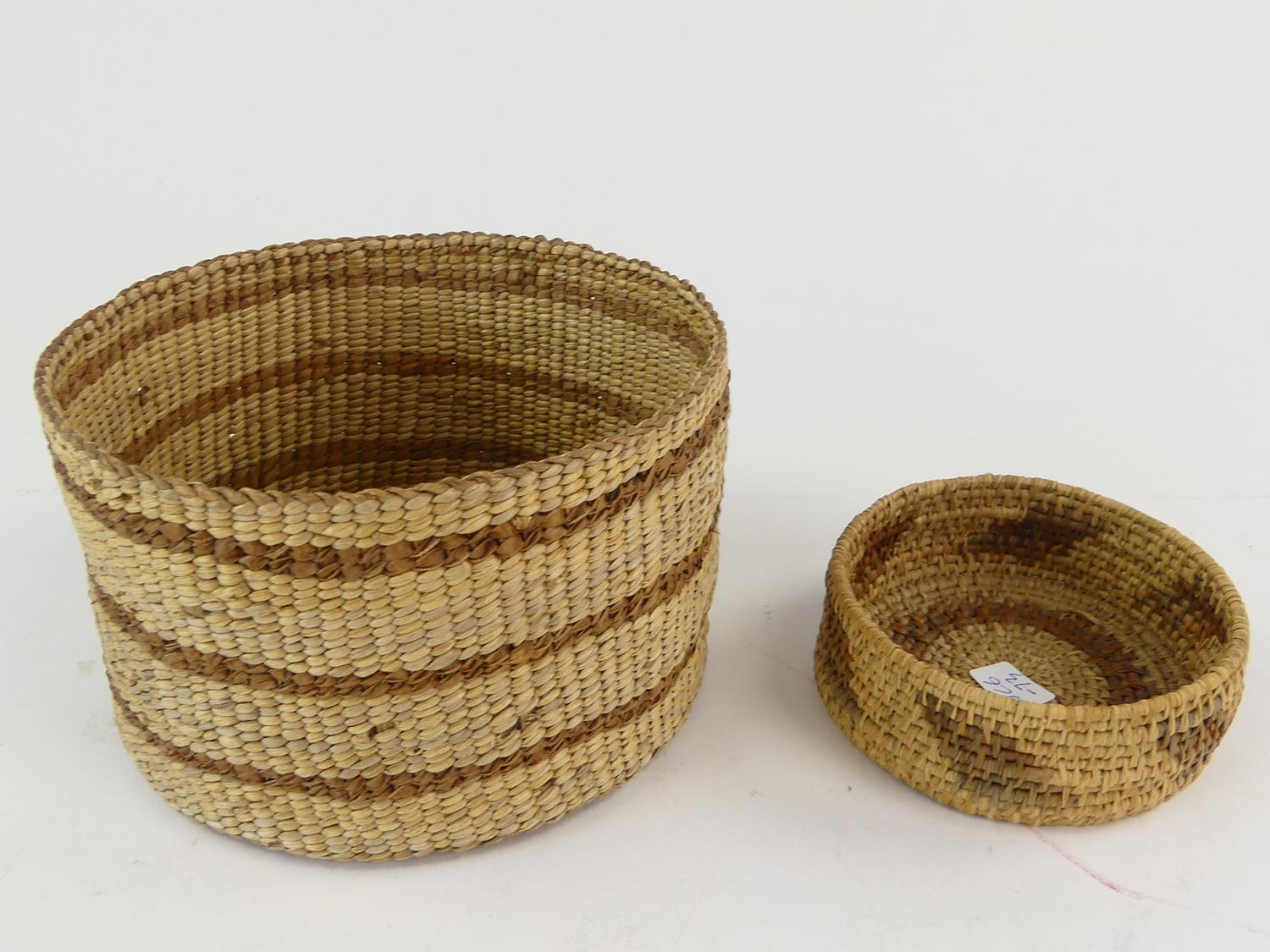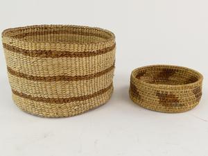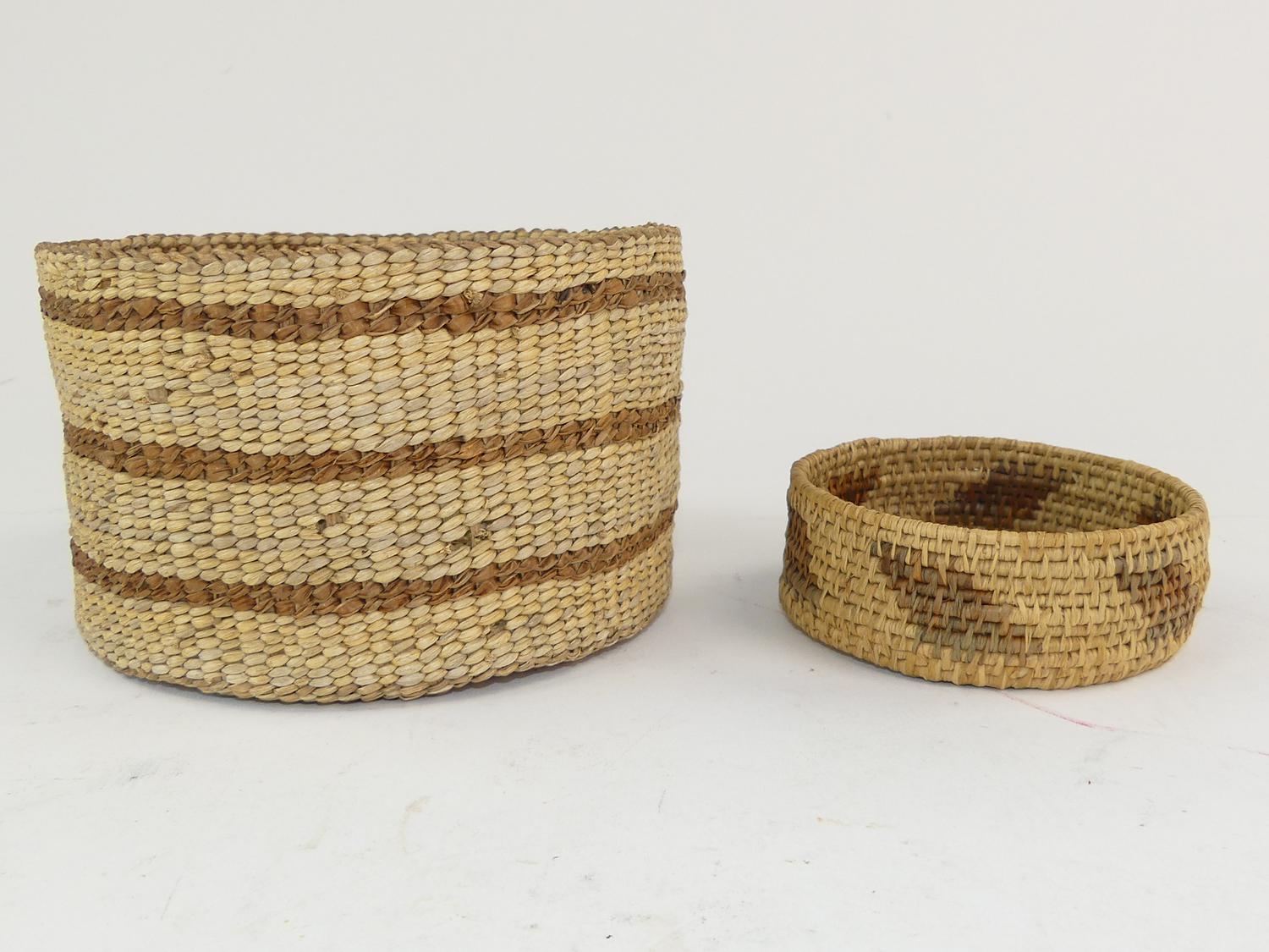 two west coast native woven baskets, 3 3/4" x 6" and smaller