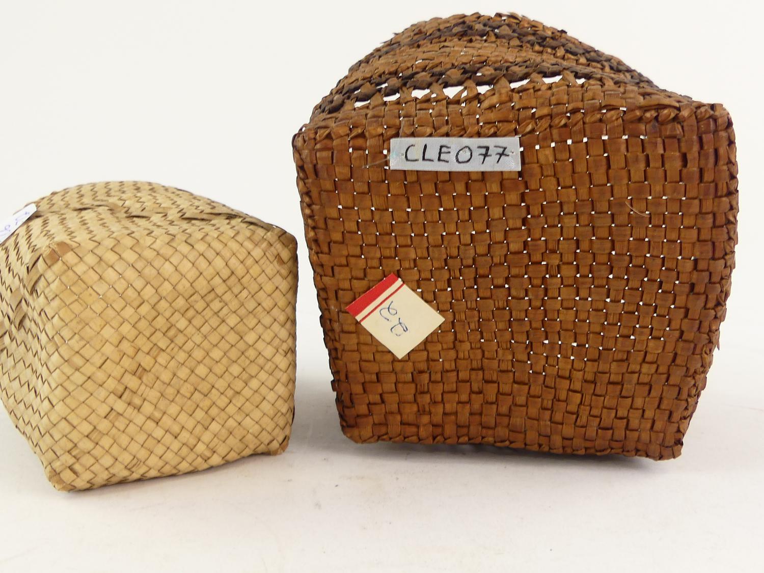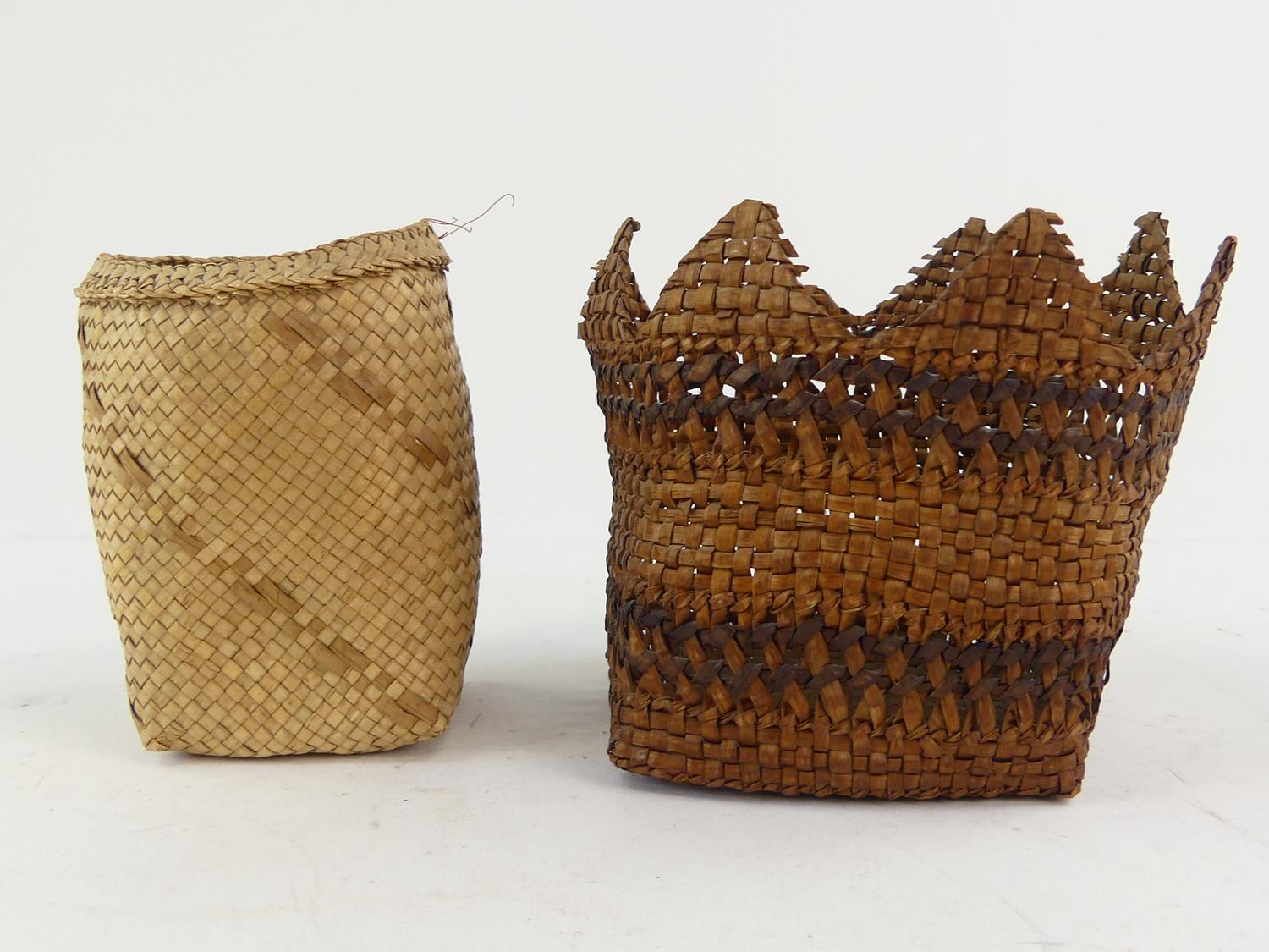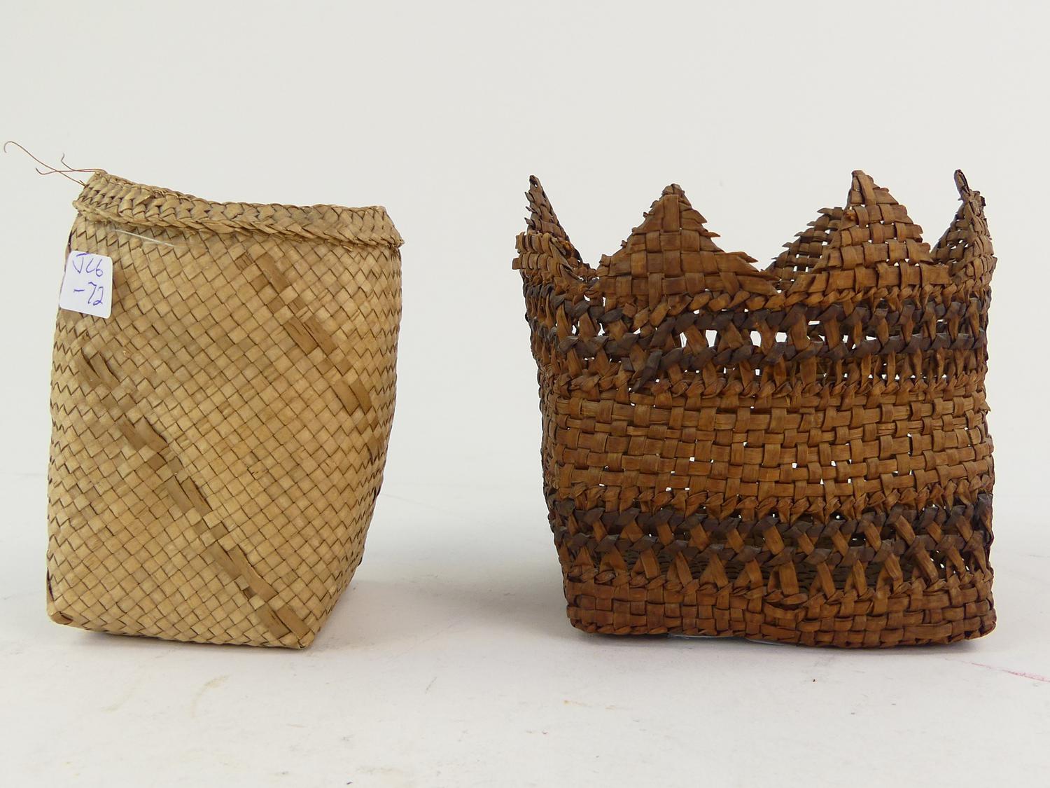 two west coast native woven baskets, 4" x 4 1/2" x and smaller