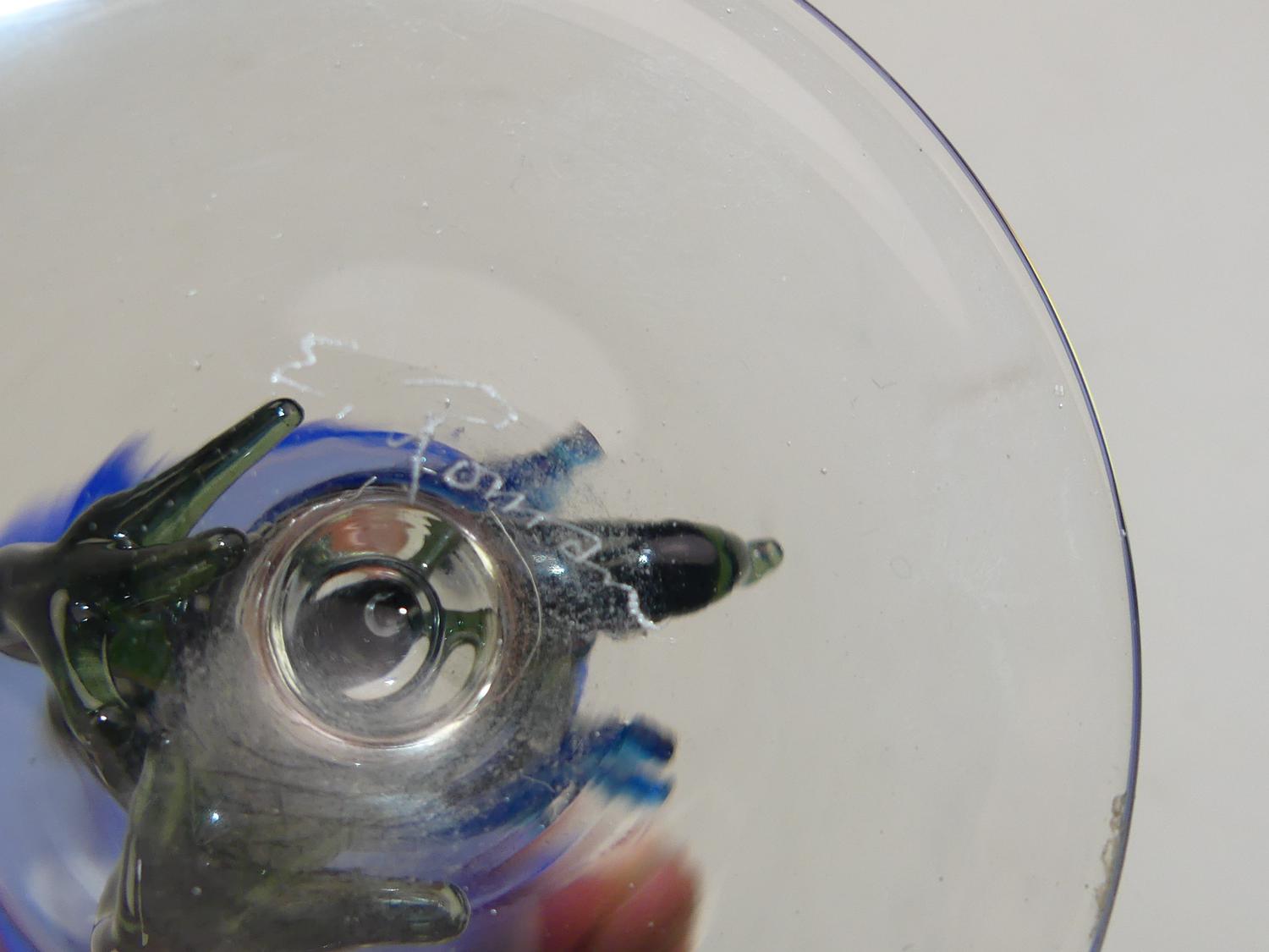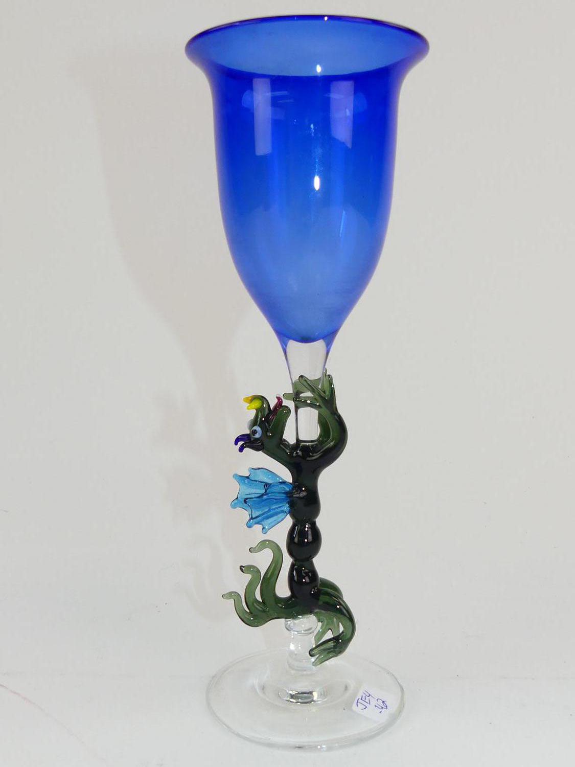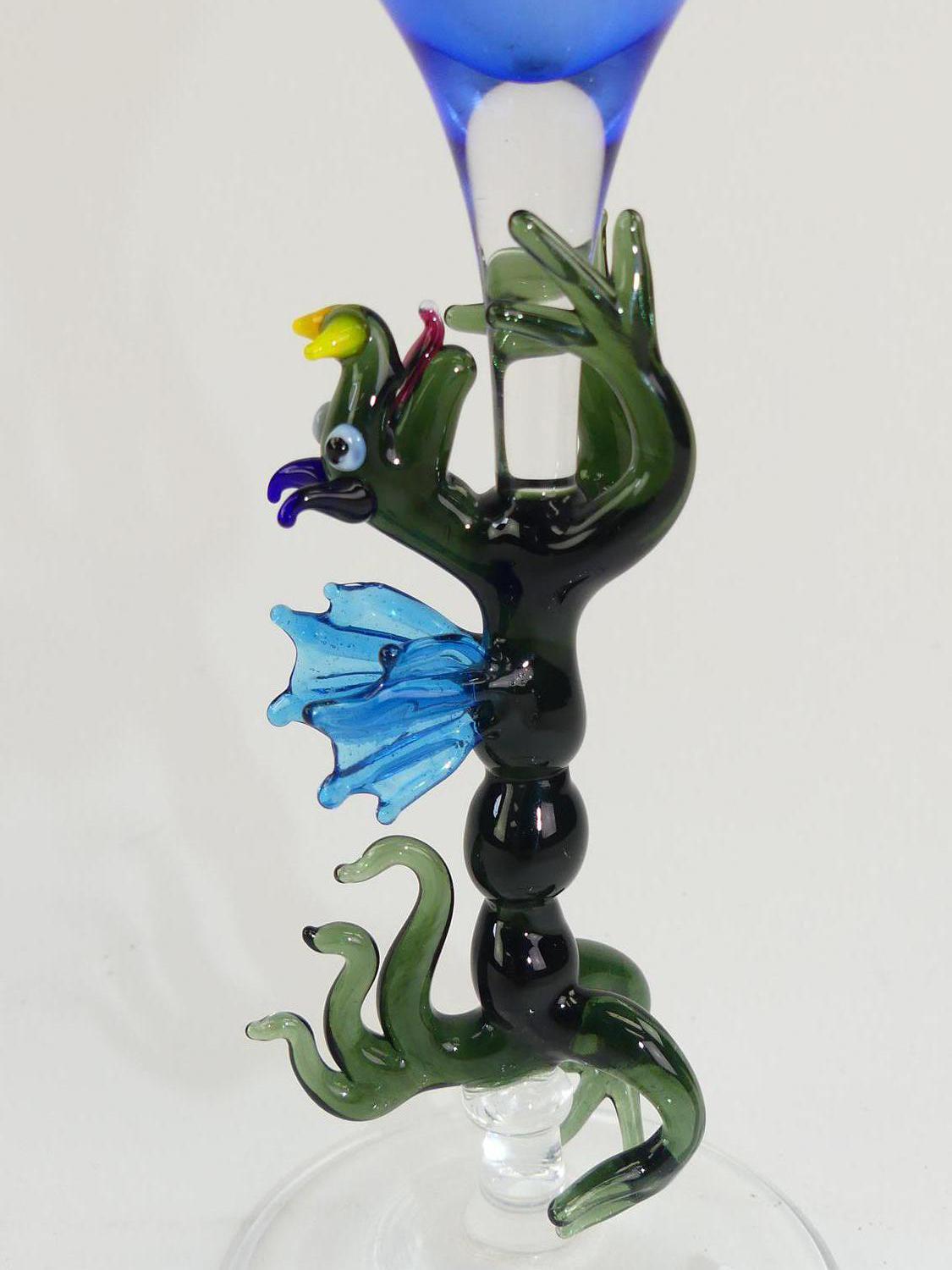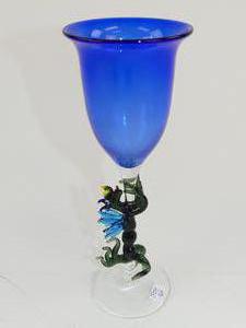 edward roman (b.1941), dragon motif stem glass, ht. 9"