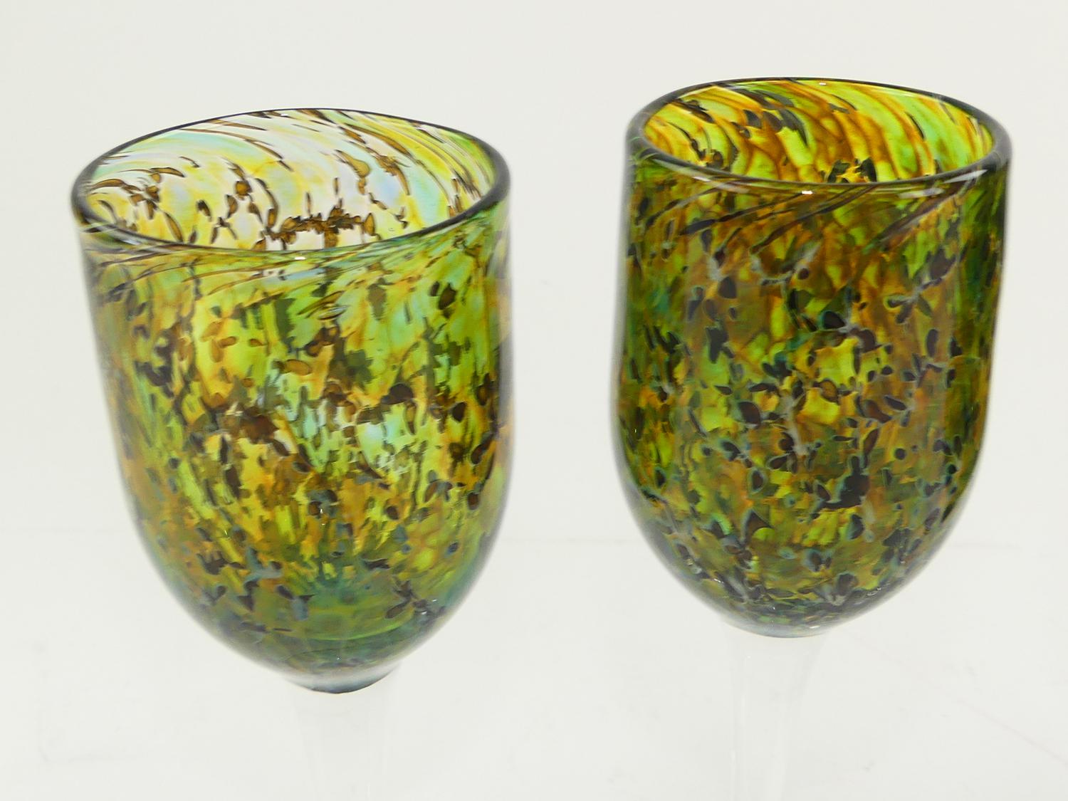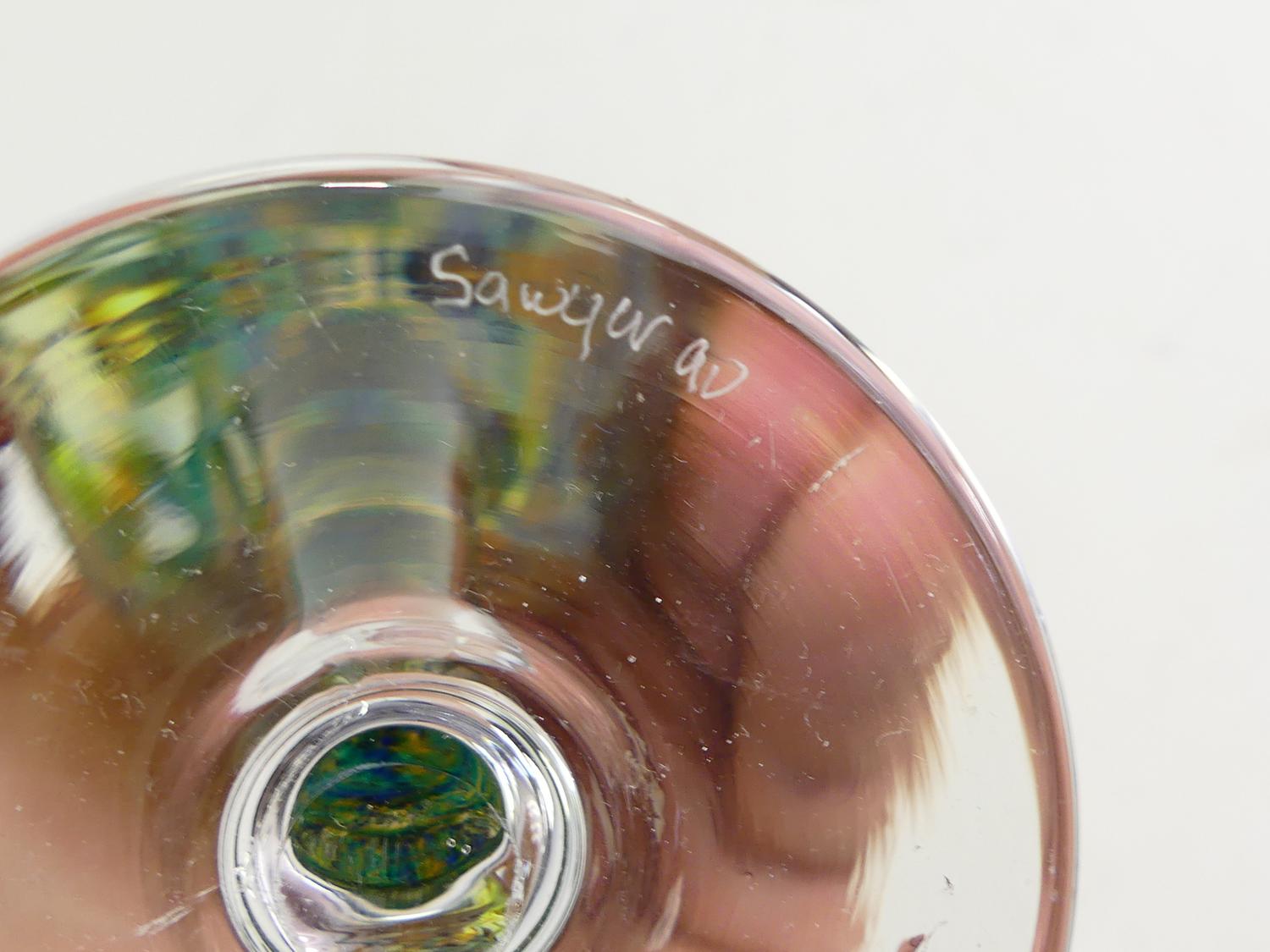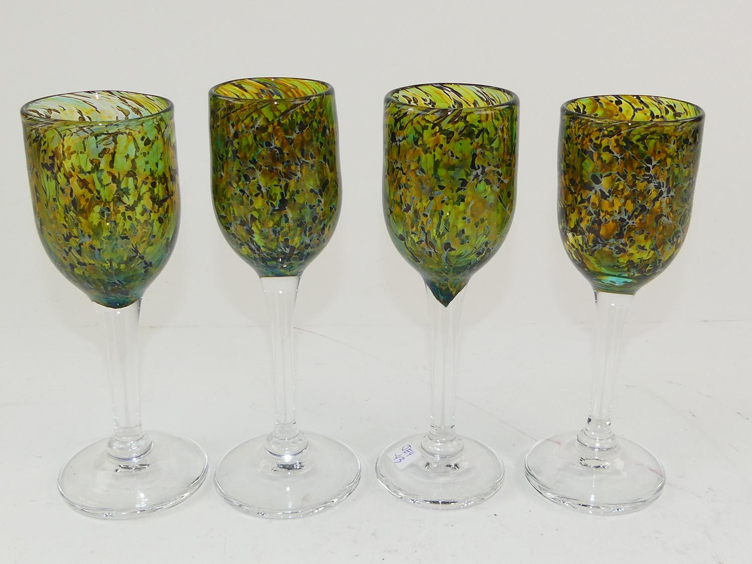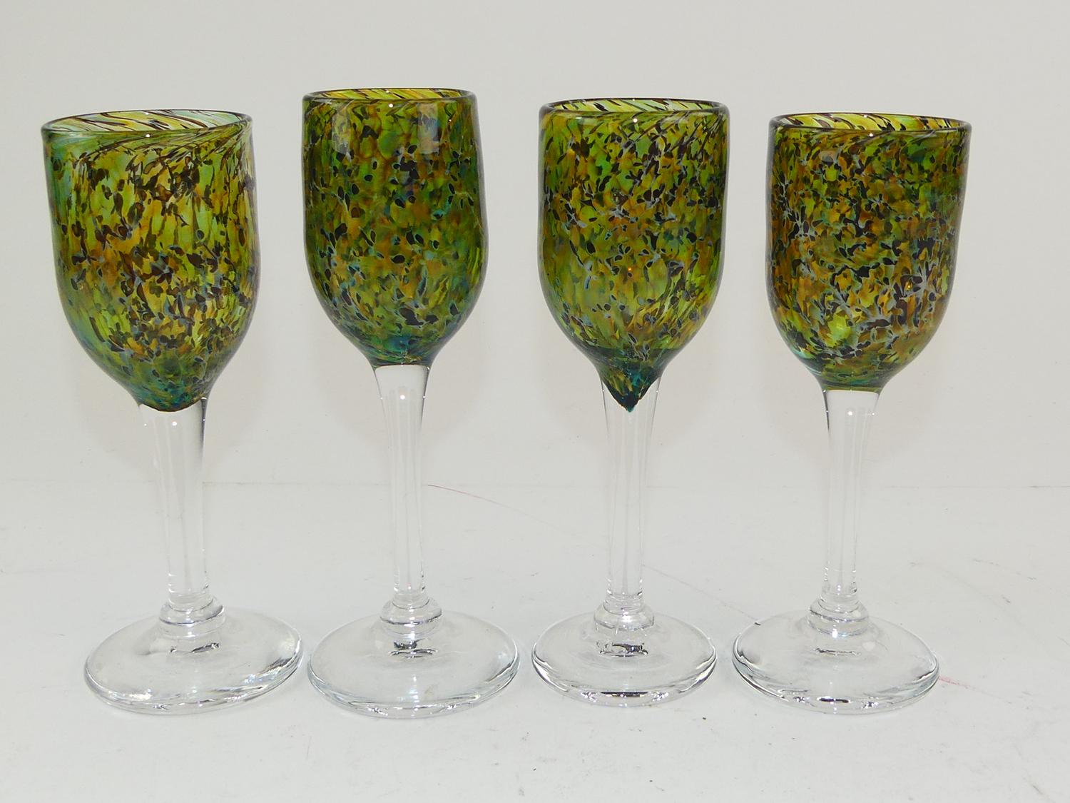 jon sawyer (1955-2012), four studio glass stem glasses, ht. 7 1/2"