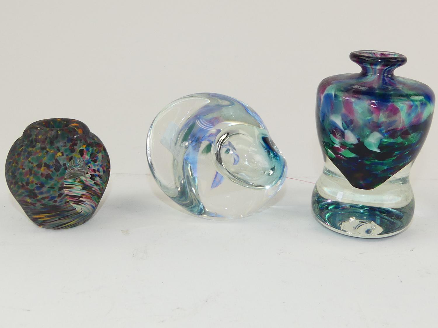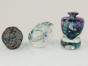 thord karlsson, d.1993, art glass scent bottle, ht 3 1/2", with jon sawyer (1955-2012), art glass scent bottled.1990, ht. 2", and another