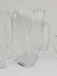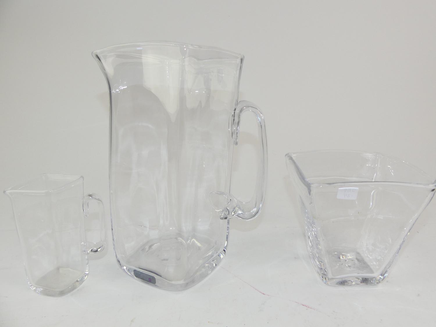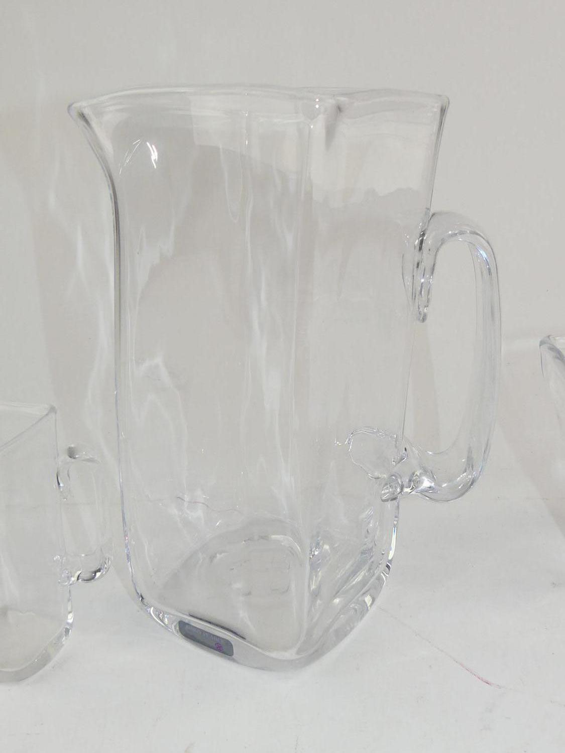 simon pearce graduated pitchers and a vase, signed, ht. 10" and smaller