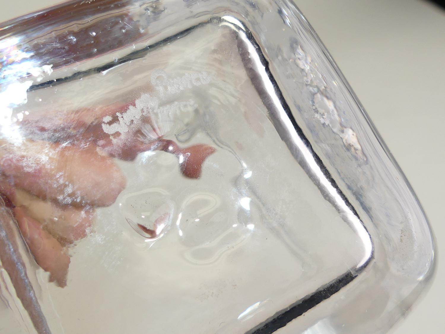 simon pearce graduated pair of square glass bowls, signed, 9" x 13 1/2" and smaller