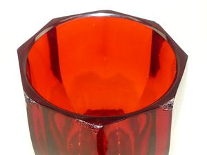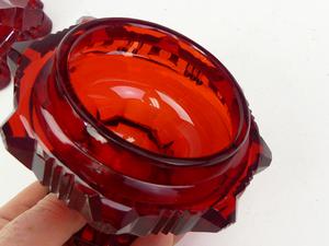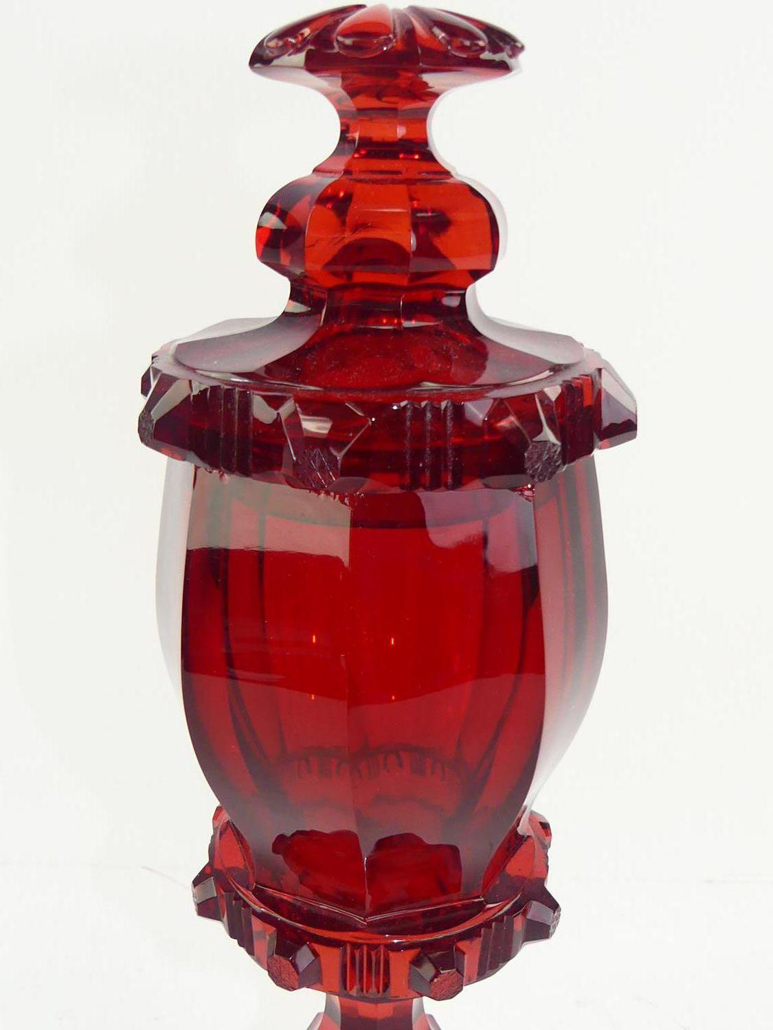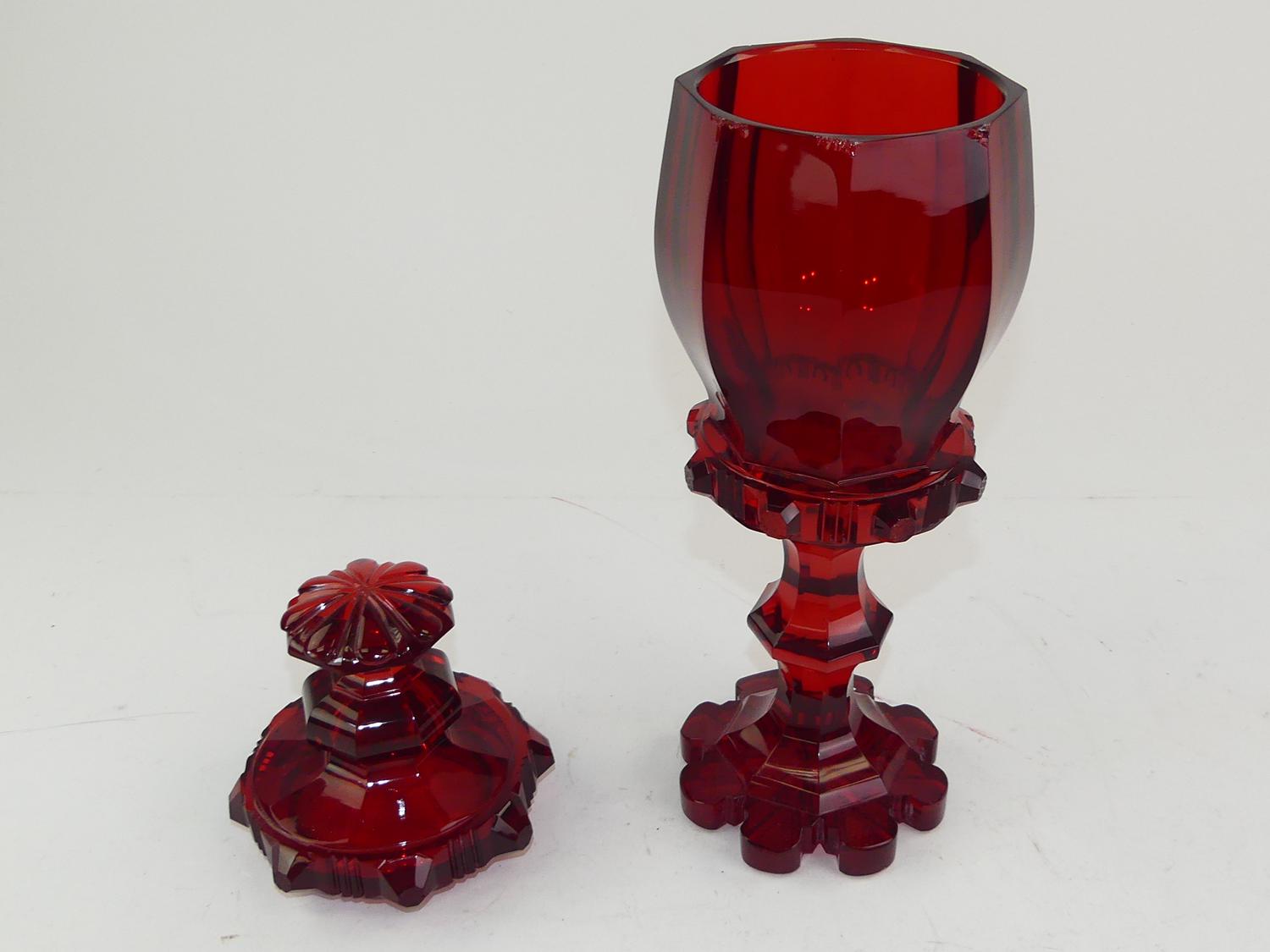 bohemain ruby glass cup and cover, ht 15", small rim chips