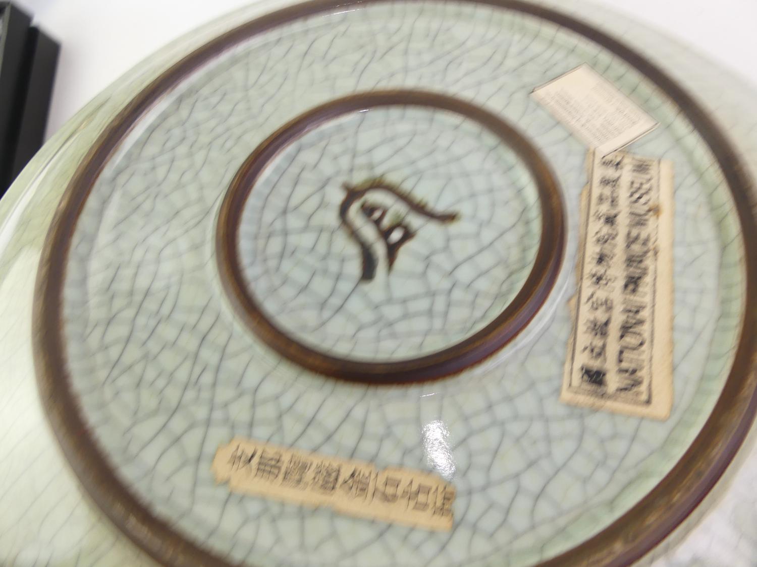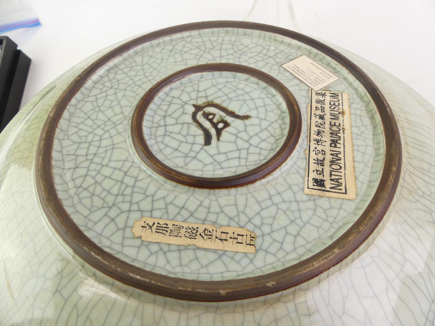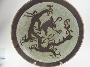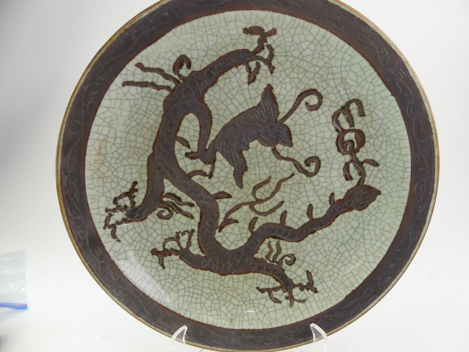 chinese crackle glazed dragon dish, 19th century, dia. 17 1/2"