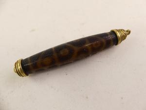 sino tibetan ceremonial dzi bead, 19th century, length 3"
