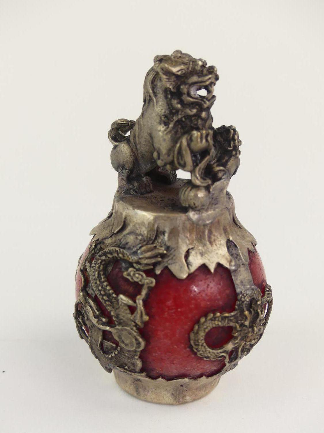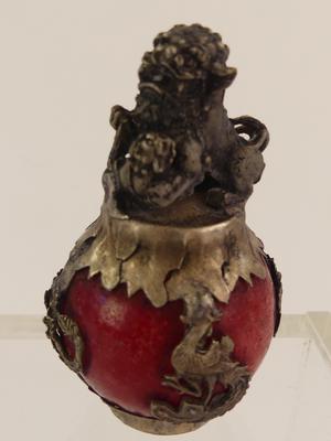chinese pink marble lion paperweight, early 20th century, ht . 2 3/4"