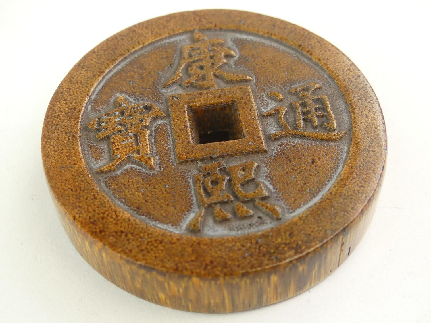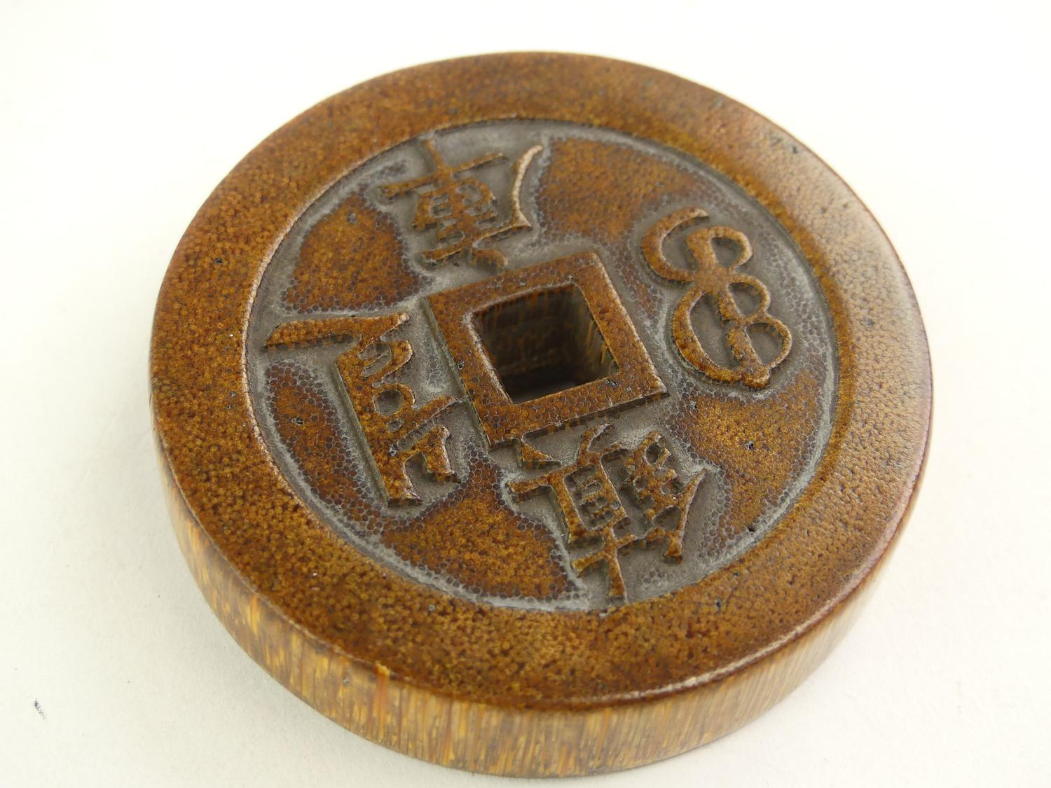 sino tibetan ceremonial horn pendant, late 19th century, diameter 3"