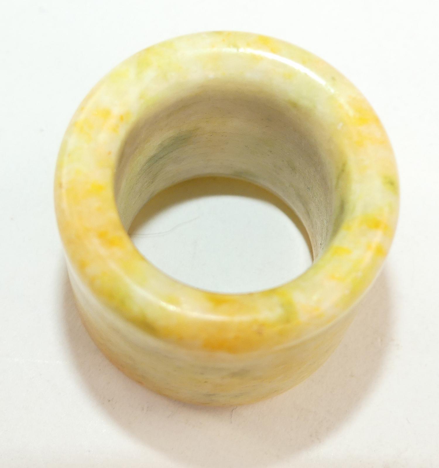 mottled crude jade archer ring, 19th century, 1 2/16" x 1 1/4"
