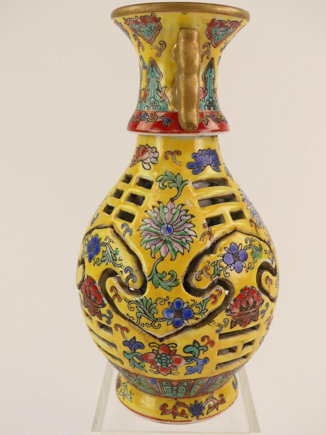 chinese openwork rotating famille rose vase, 19th century, ht 9 1/2"