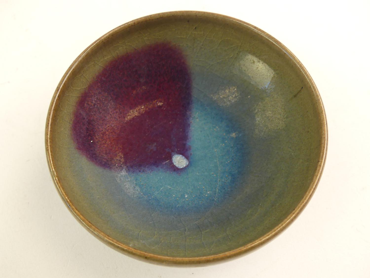 chinese celadon glazed wine bowl, 19th century, 1 1/4" x 4"