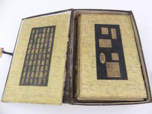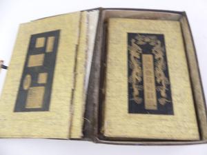 a box of gilt calligraphy sutra scripts on jade panels, late 19th century, 9 1/4" x 6 1/2"