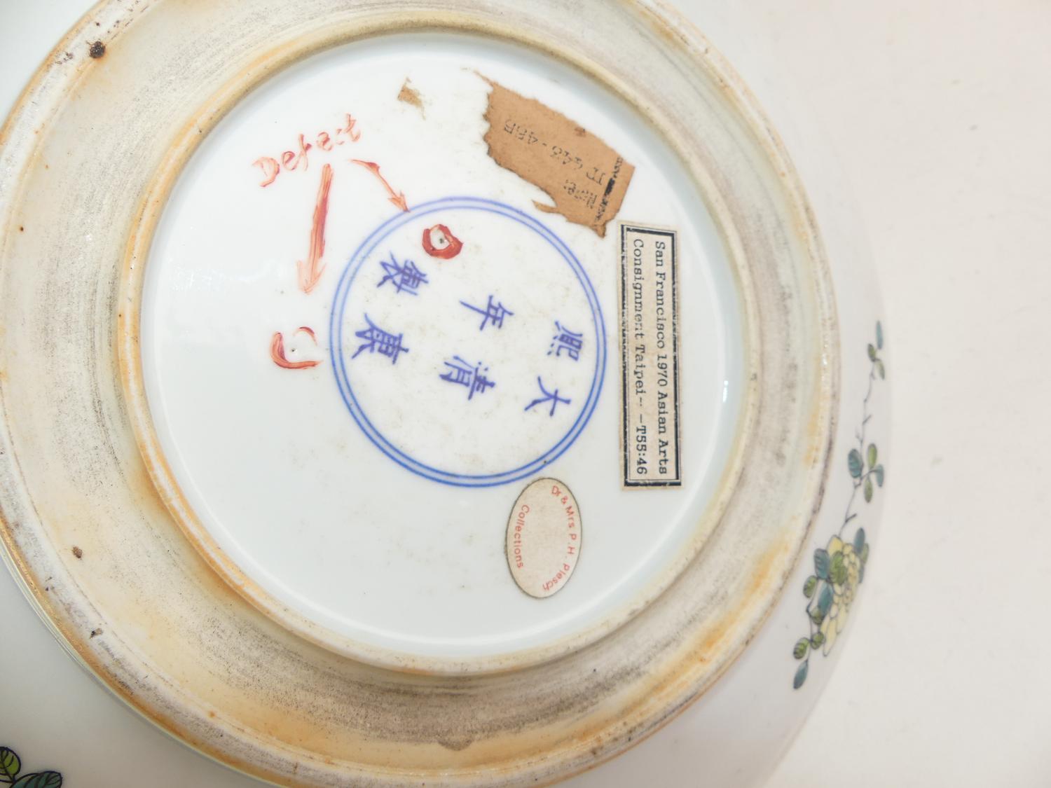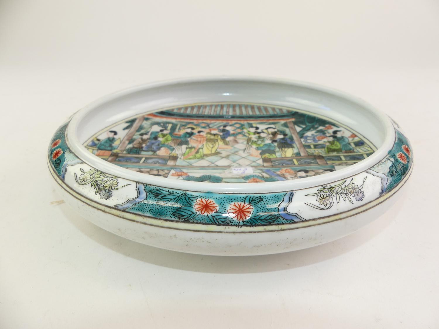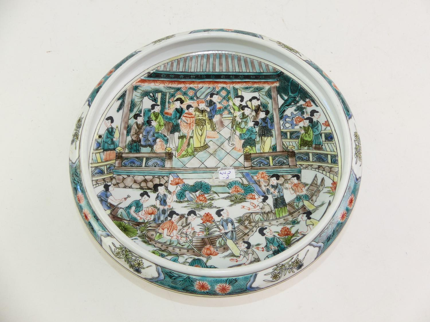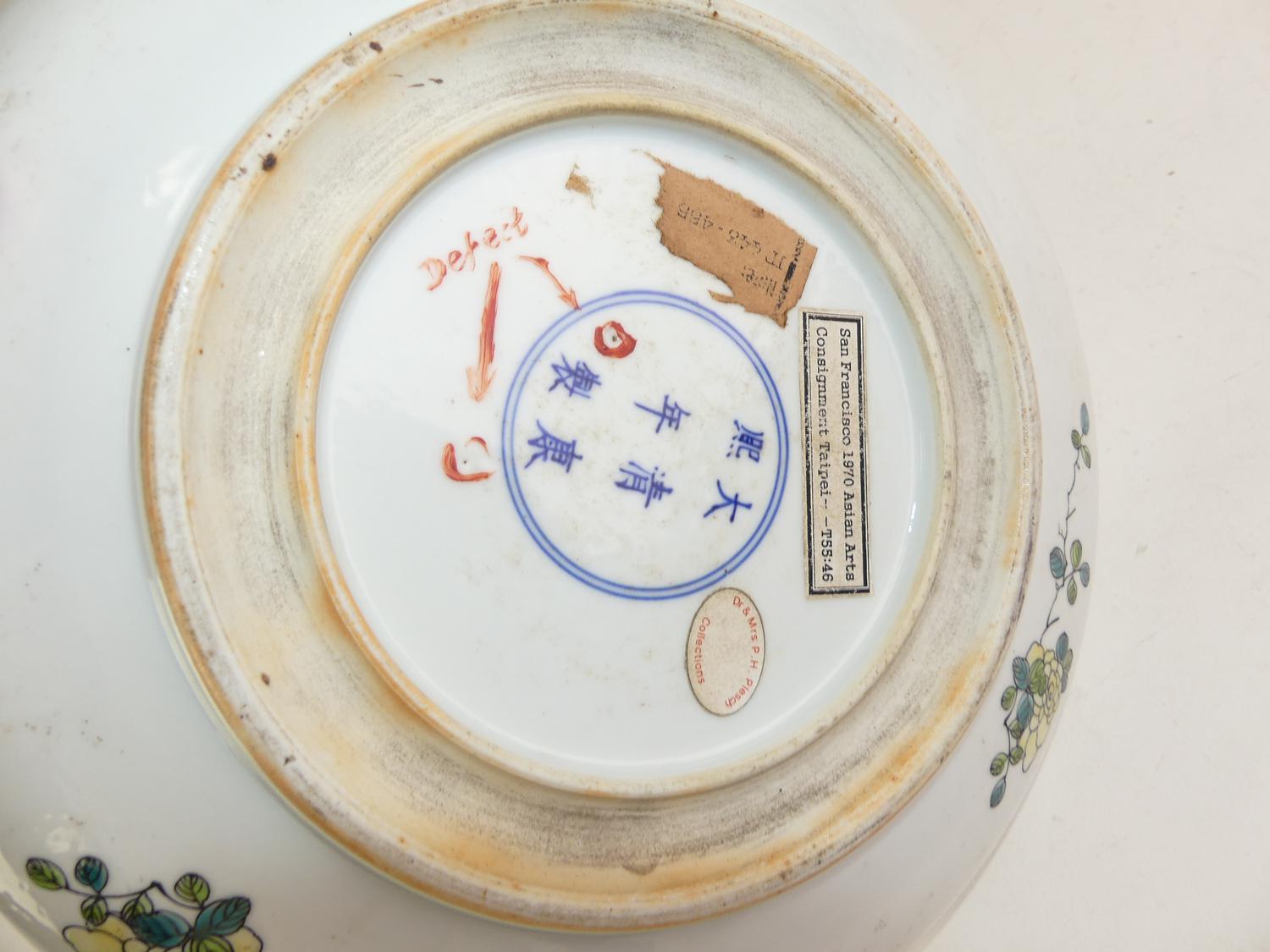 chinese famille verte figural brush wash, bearing kang-hsi reign mark, dia. 10 3/4"