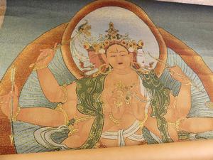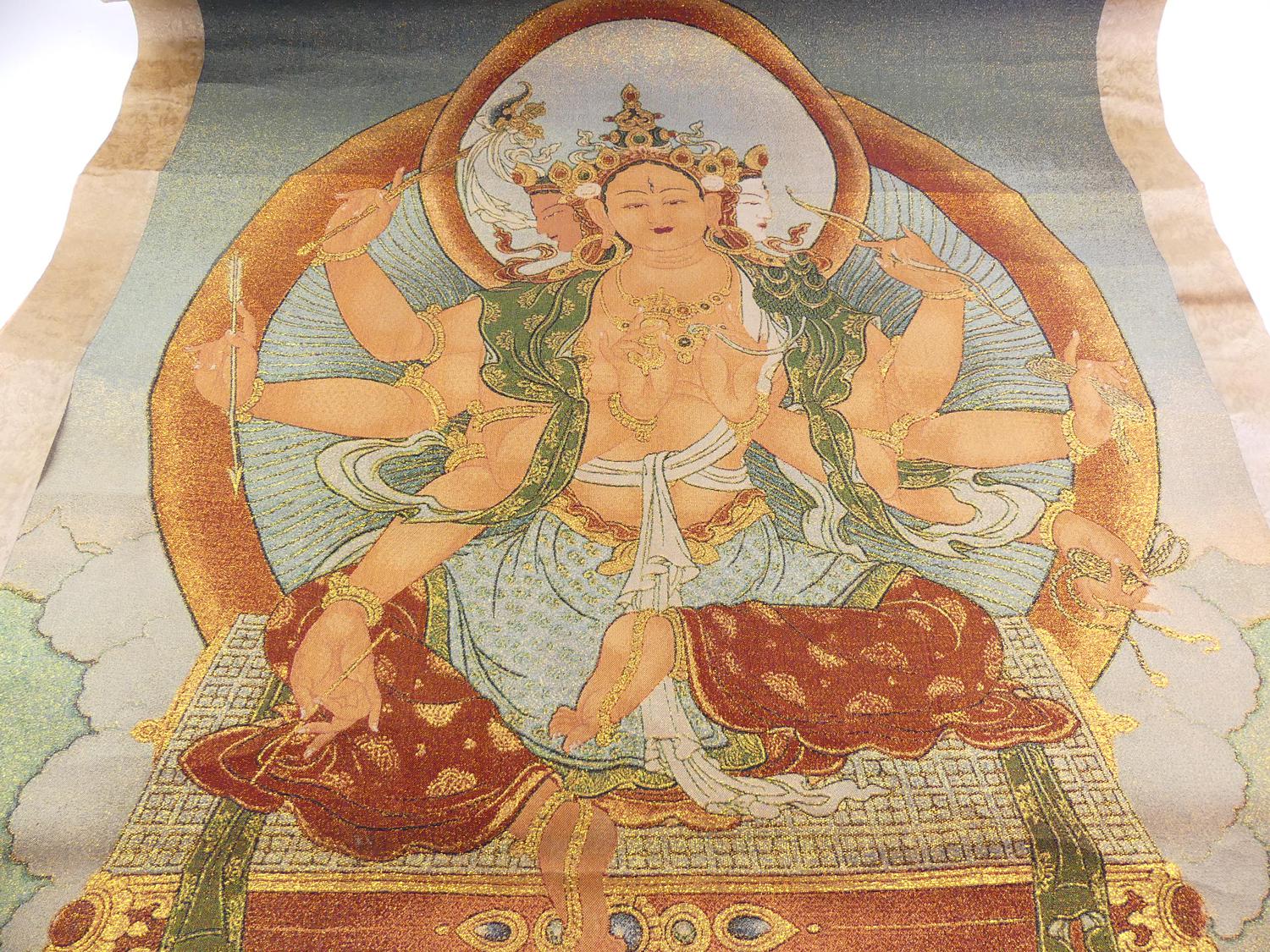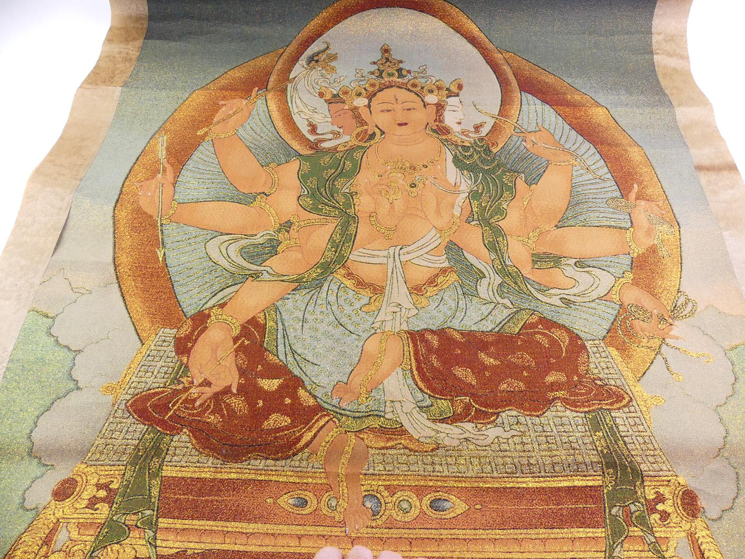 embroidery of tibetan buddha scroll, early 20th century, 84" x 42"