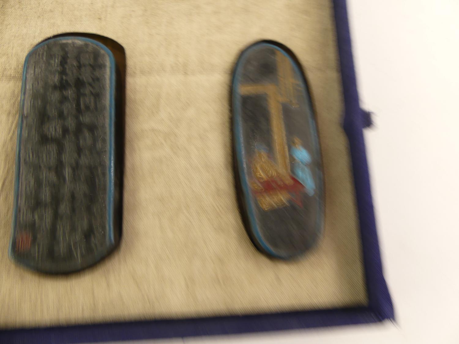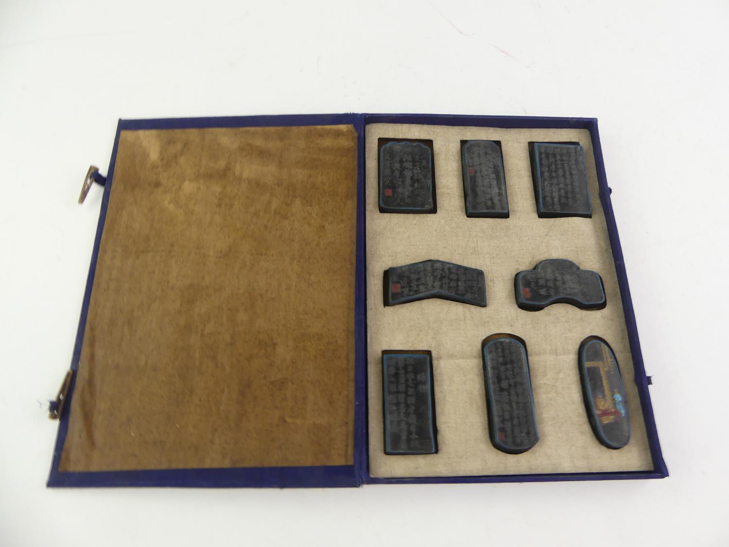 case of gilt ink blocks, early 20th century, 11" x 8"