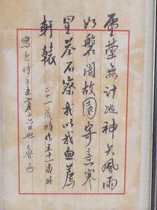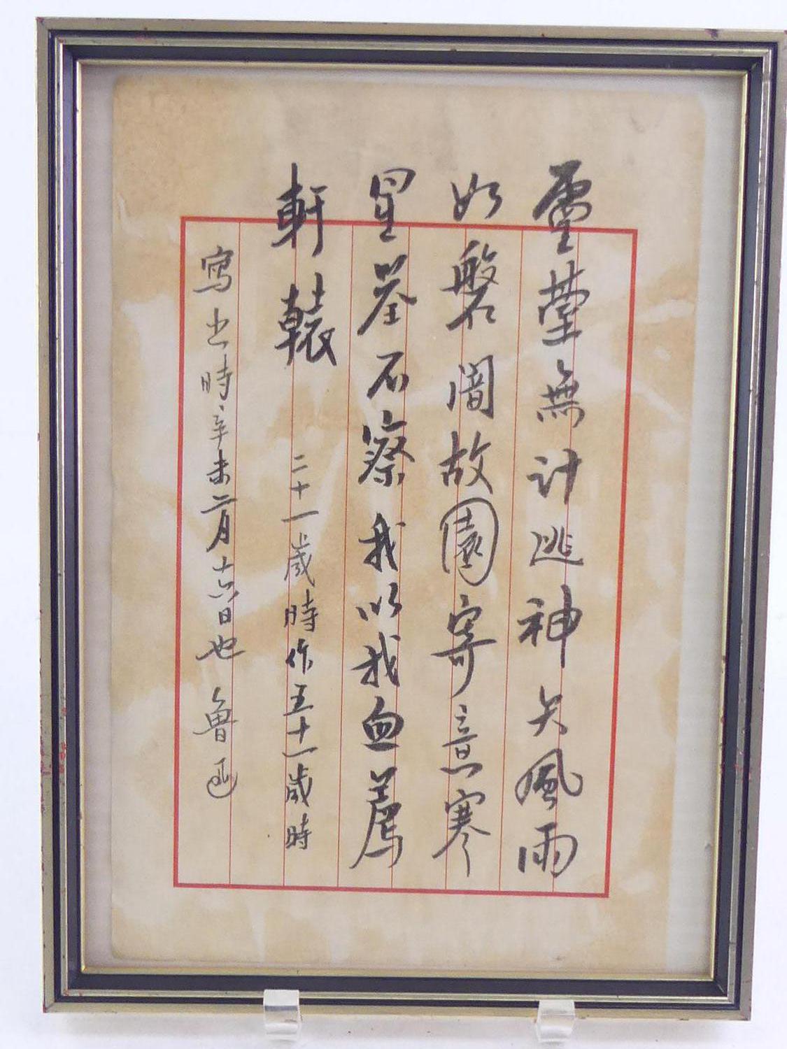chinese ink on paper calligraphy letter in frame, early 20th century, 12 1/2" x 9 1/2"