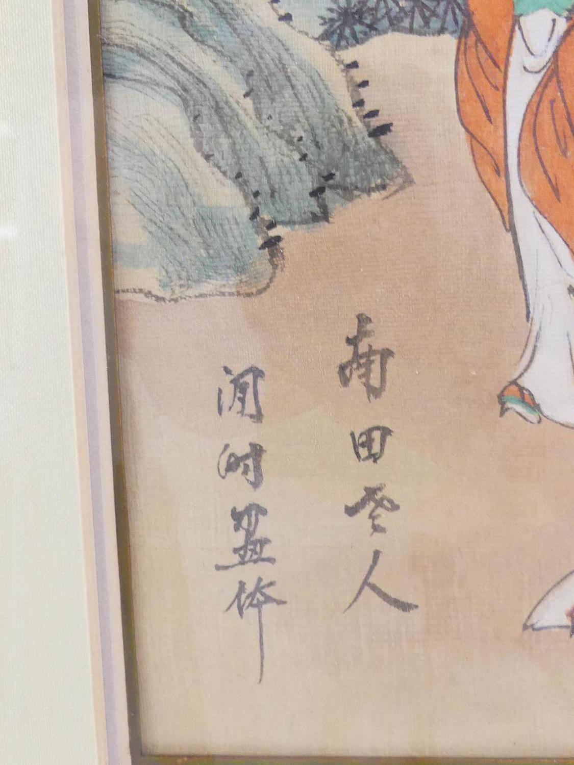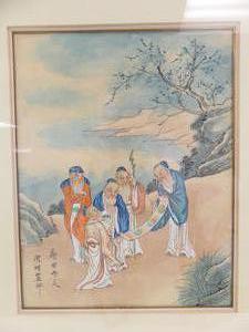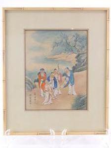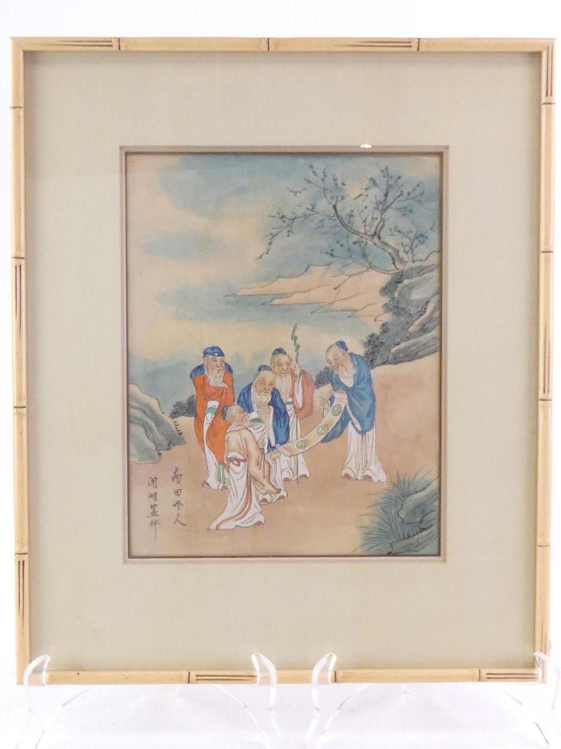 chinese watercolor, signed 13" x 10" , "landscape with figures"