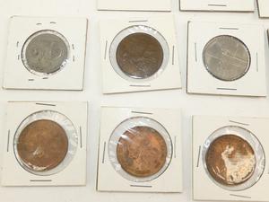 large lot of antique great britian large pennies and other coins