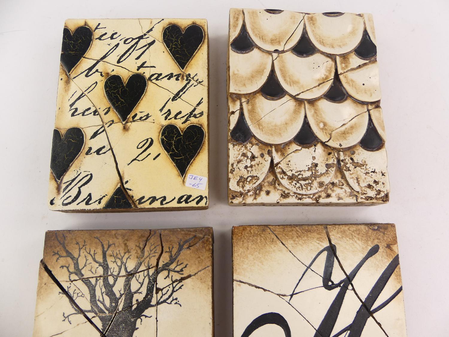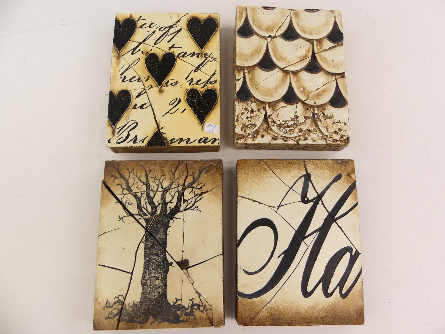 four sid dickens tiles, 8 1/4" x 6 1/4"