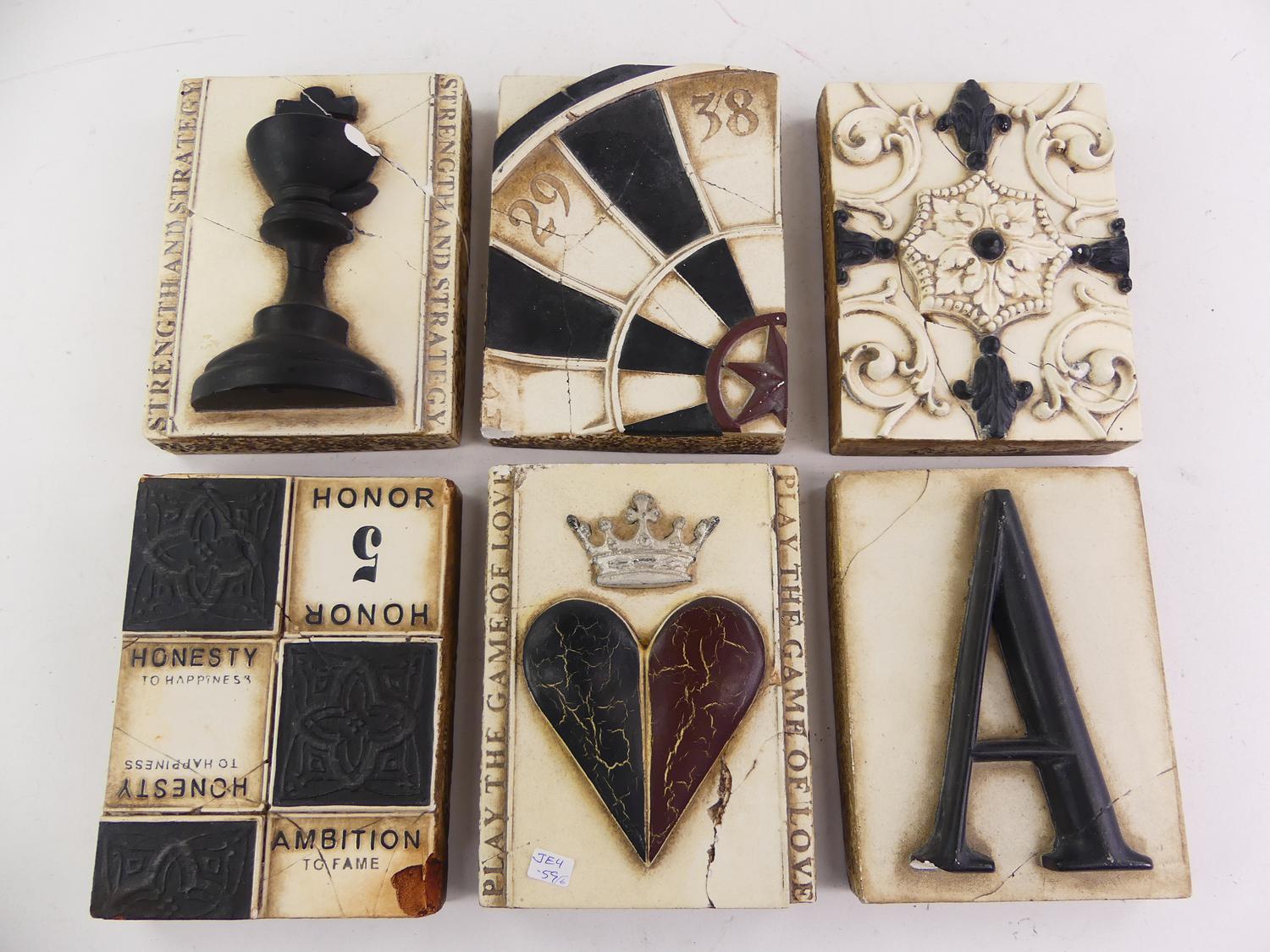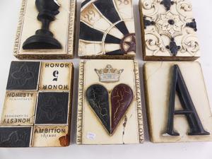 six sid dickens tiles, 8 1/4" x 6 1/4", chips