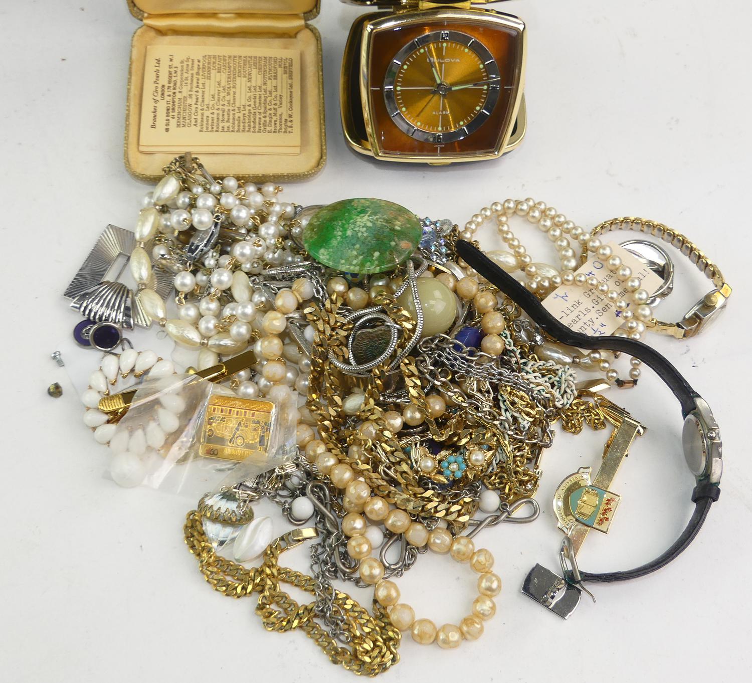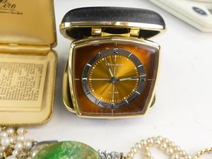 lot of vintage costume jewelery including bulova 1950s travel clock
