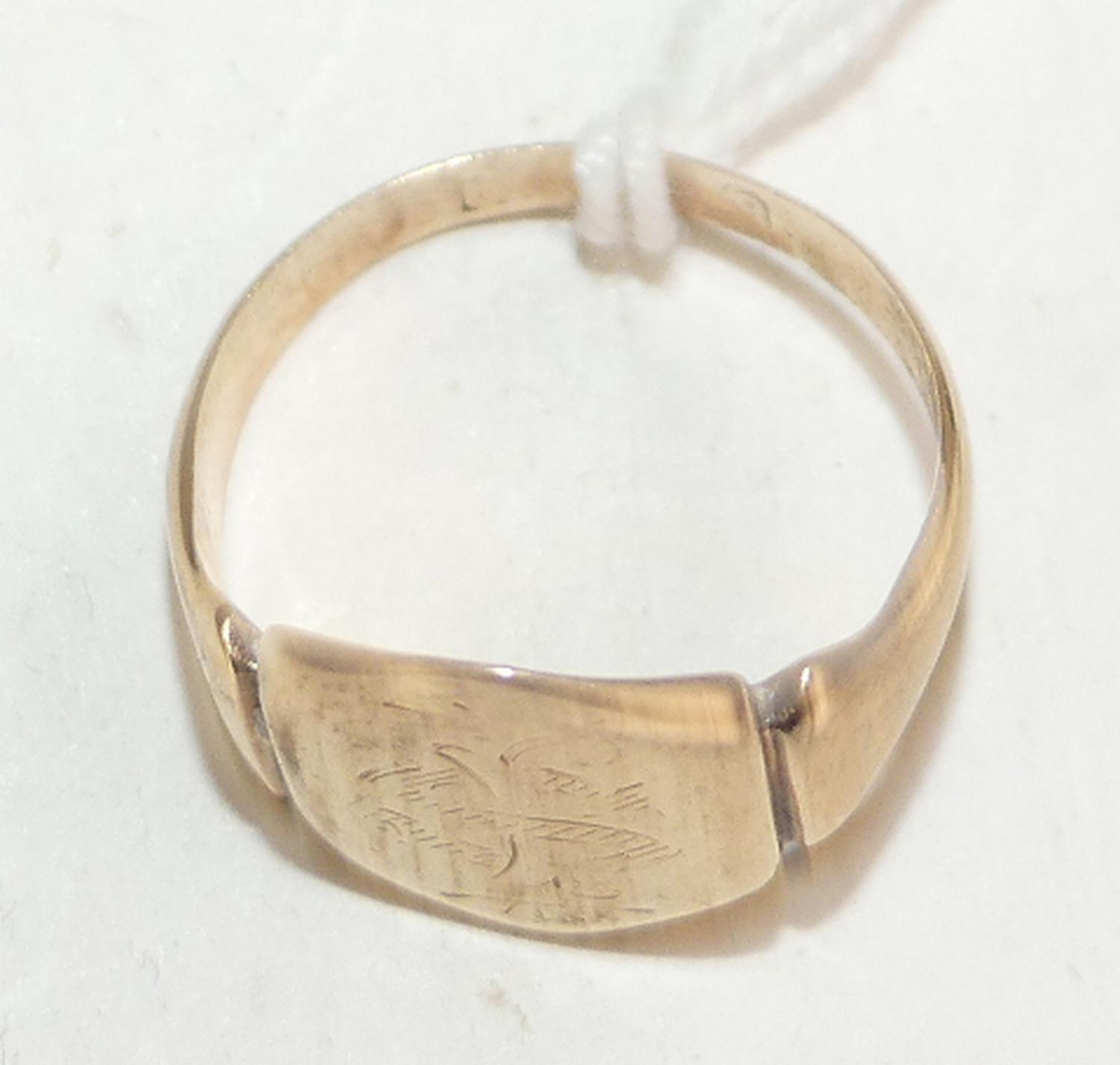 9ct signet ring, size 2 1/2, weighing approx 2.1 grams
