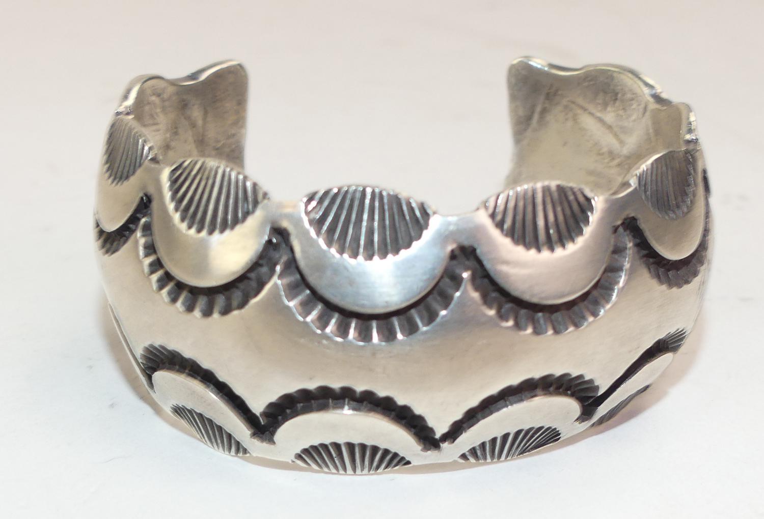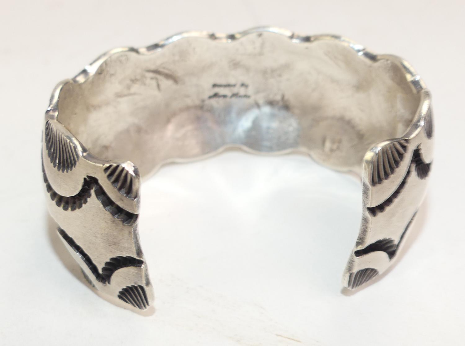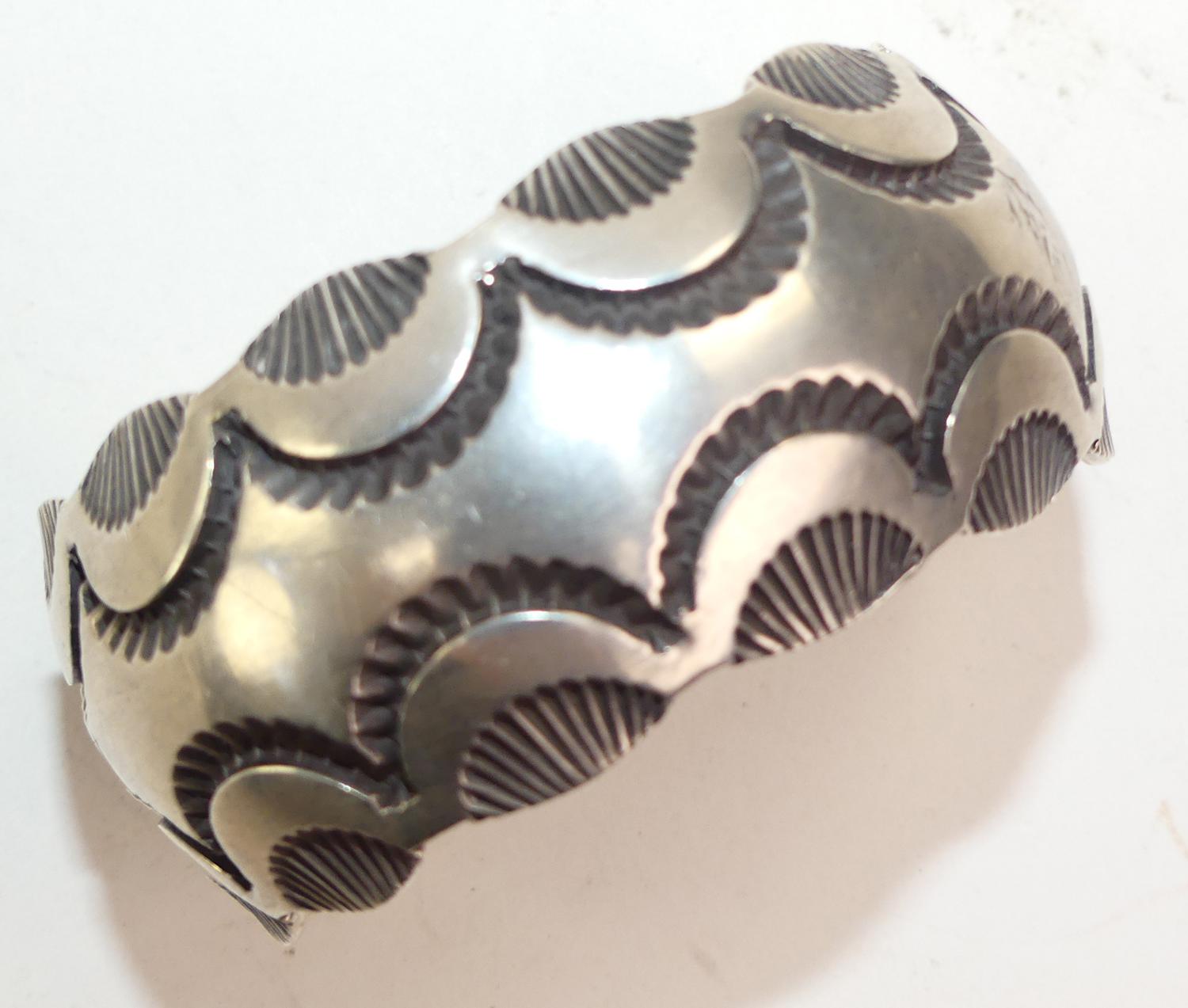 vintage apache marc antia heavy native american sterling silver cuff, signed, weighing approx 101grams, 2 1/2" across
