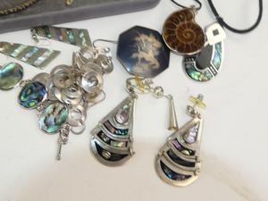 lot of vintage sterling silver jewelery, including albalone shell, weighing approx 168 grams