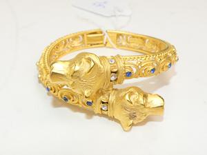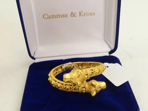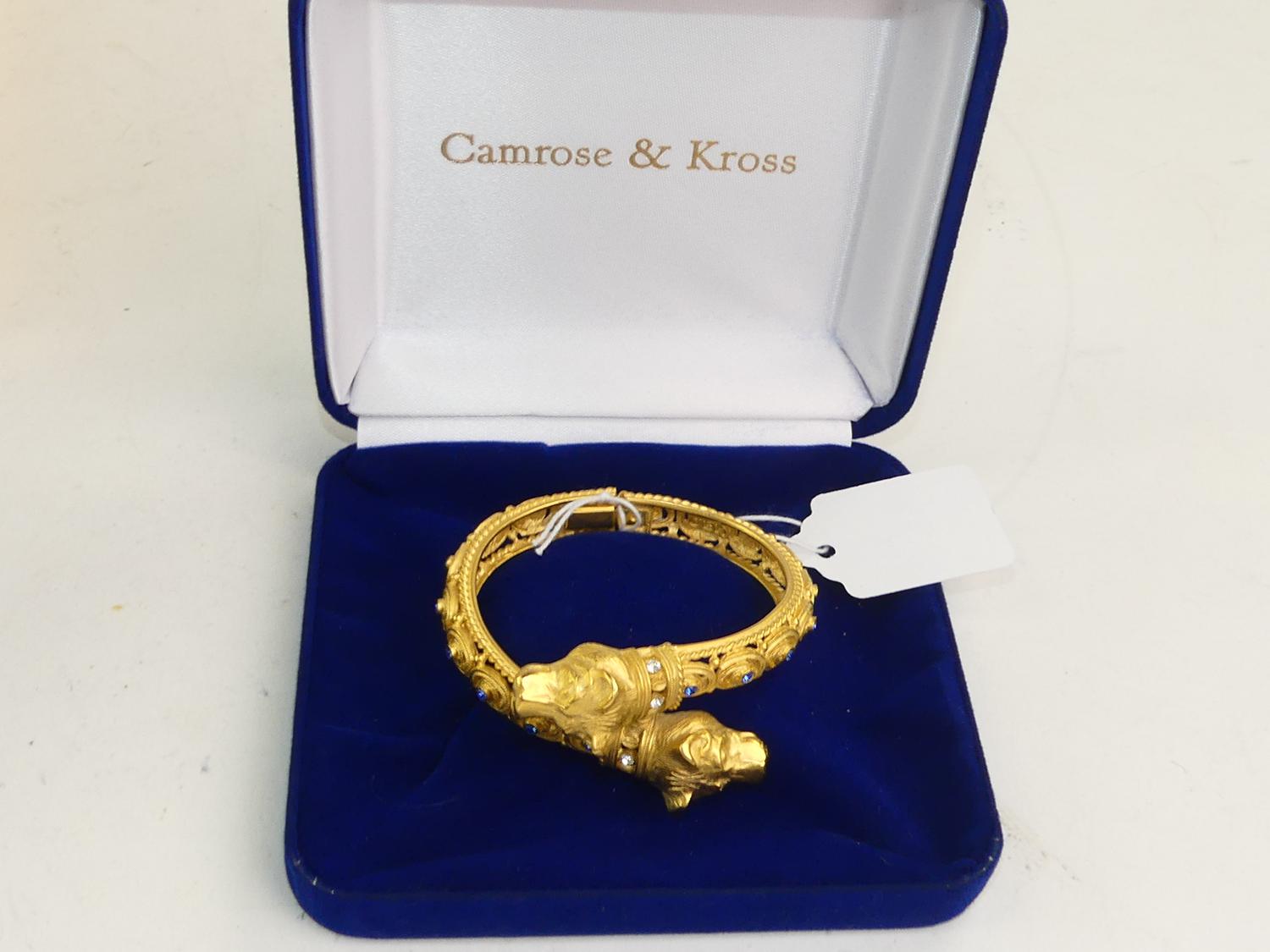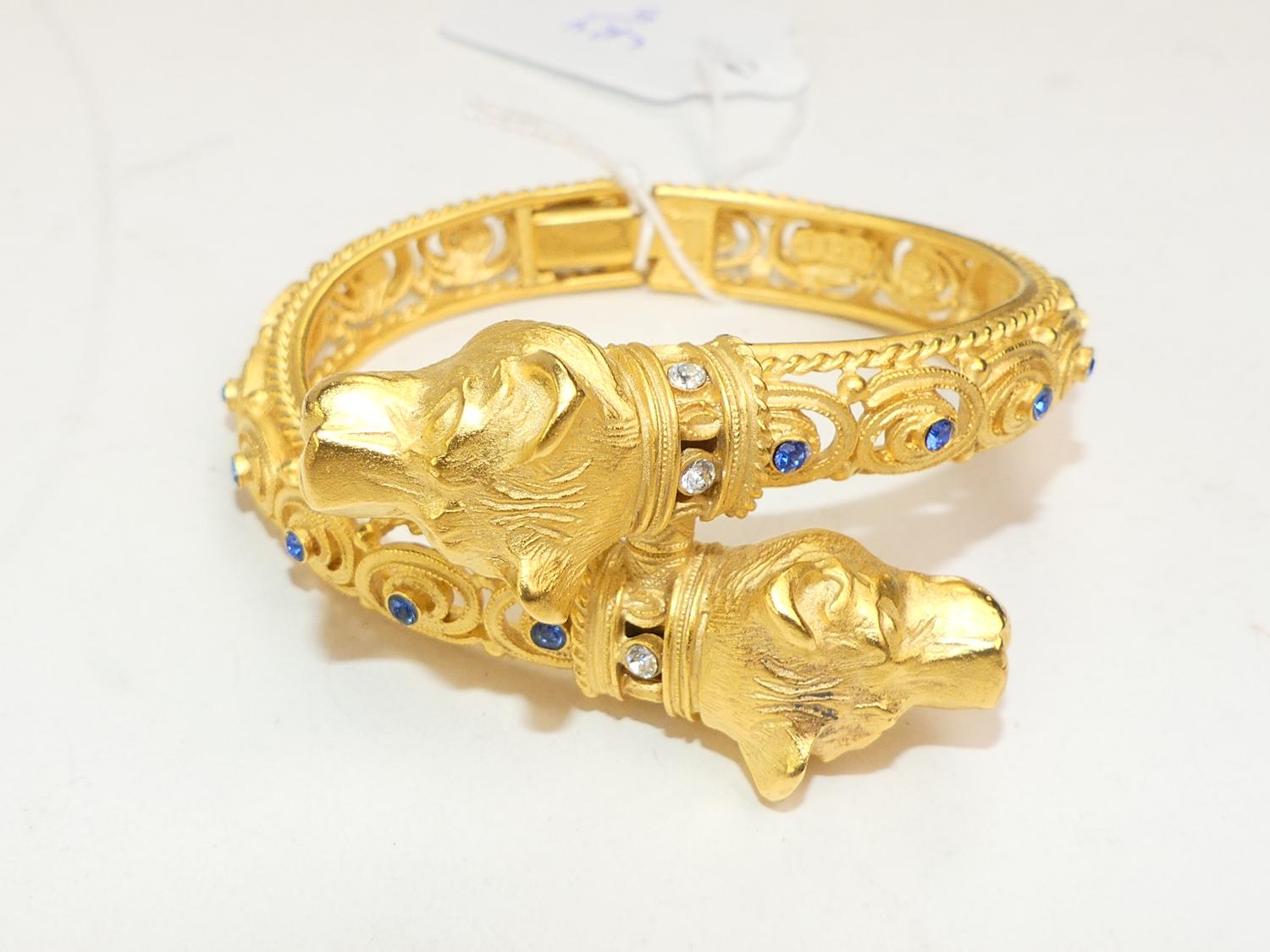 vintage double jaguar motif rhinestone cuff bracelet, camrose and kross, with box