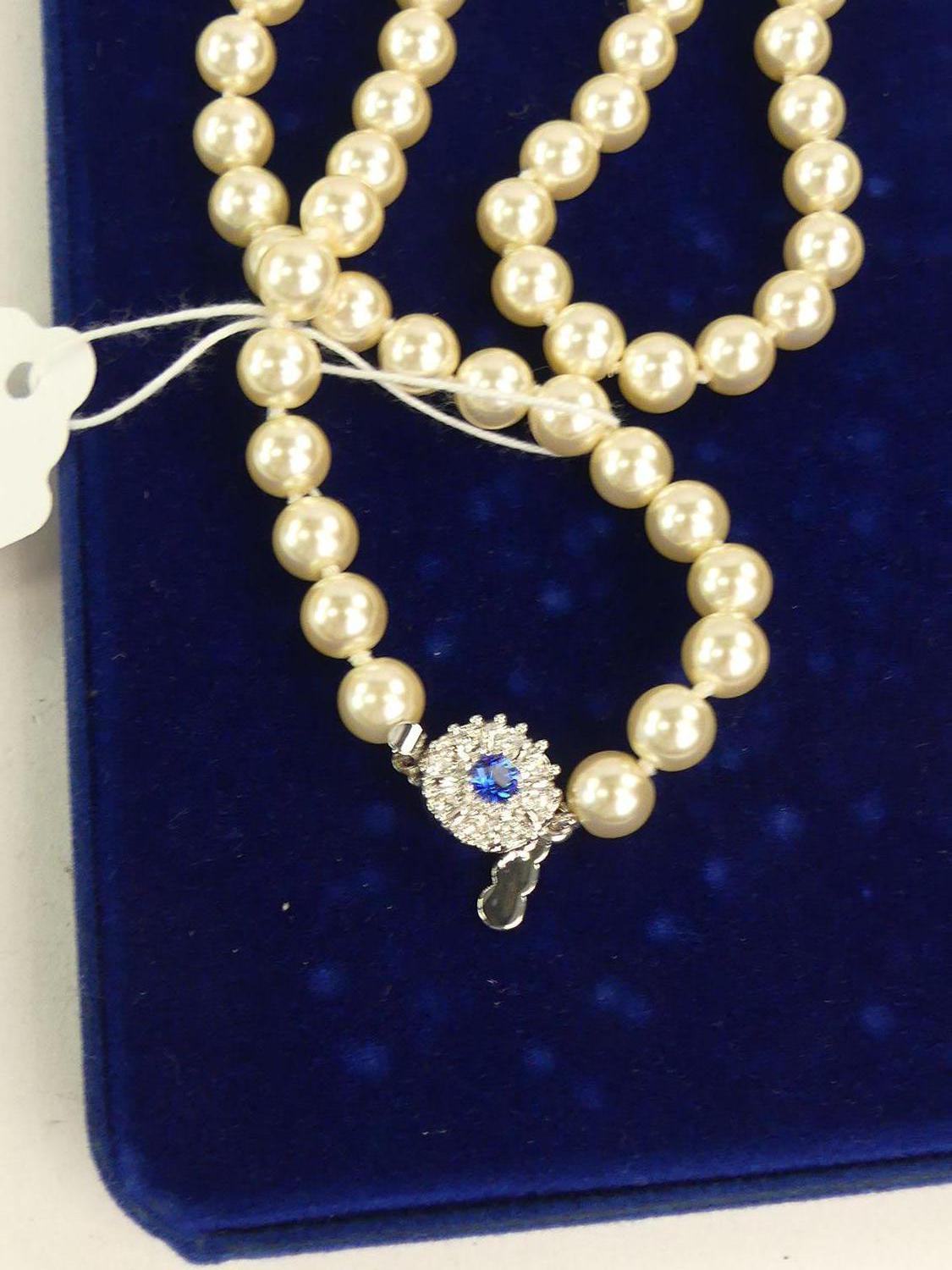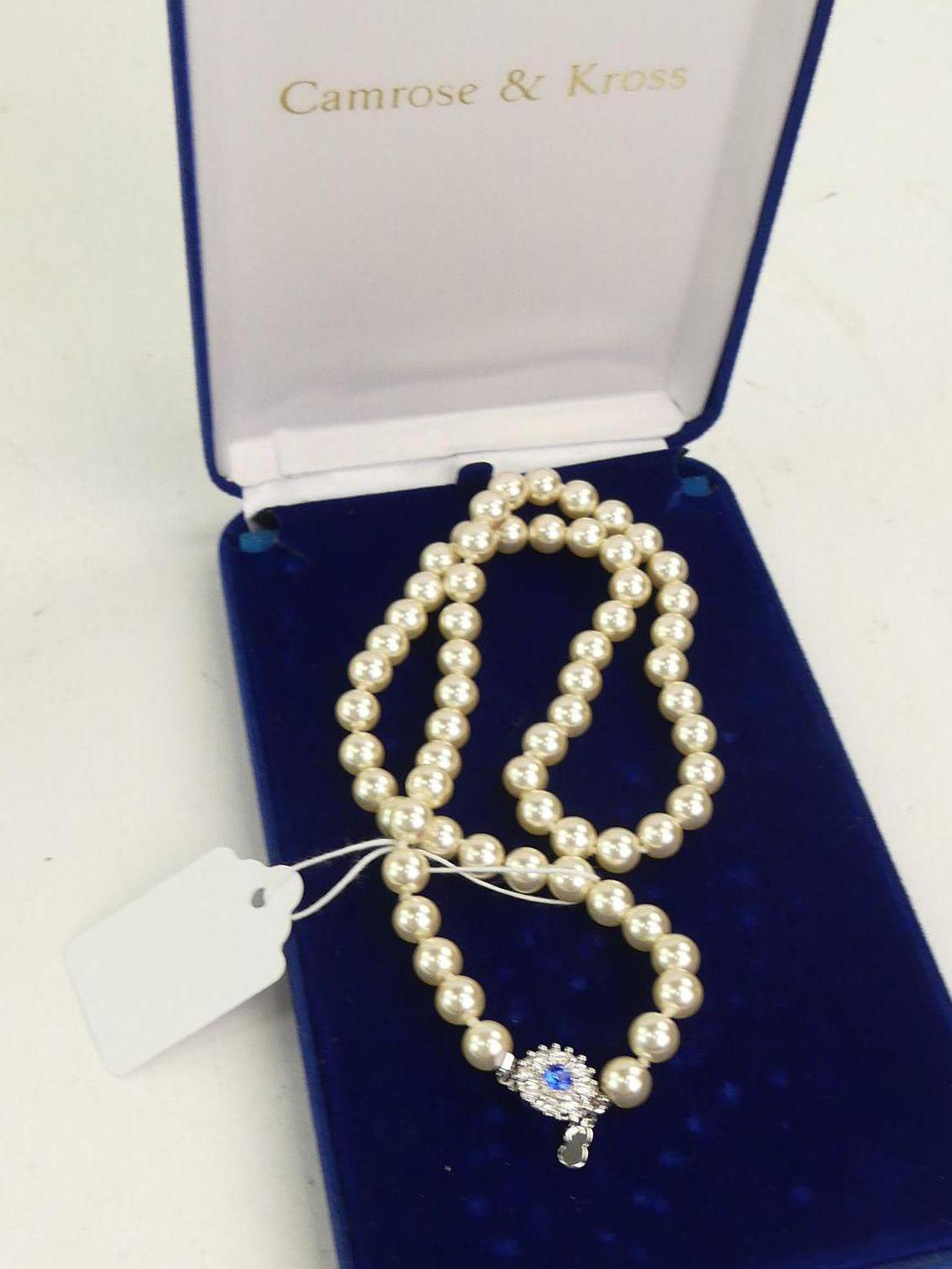 vintage faux pearl necklace, camrose and kross, with box