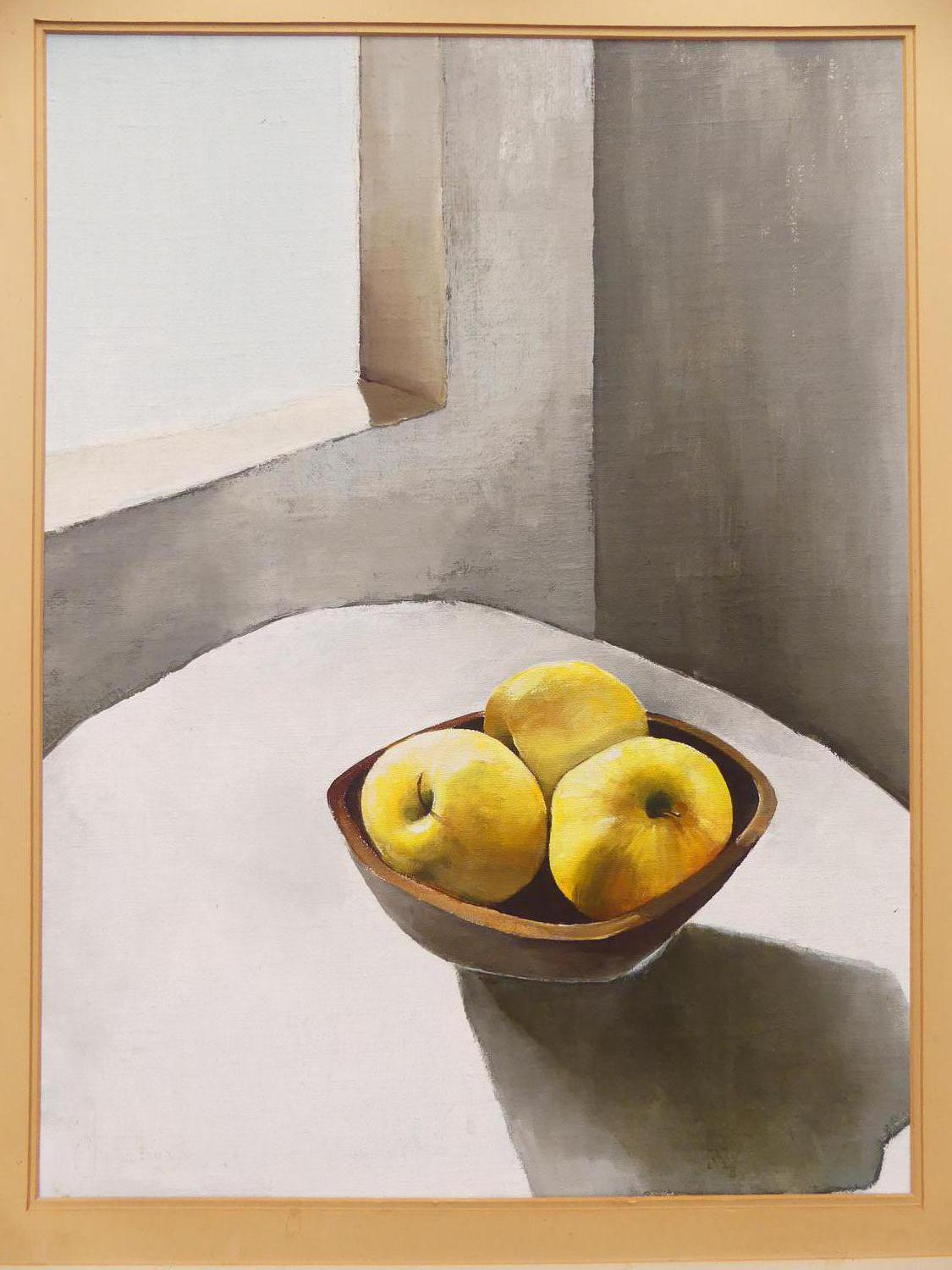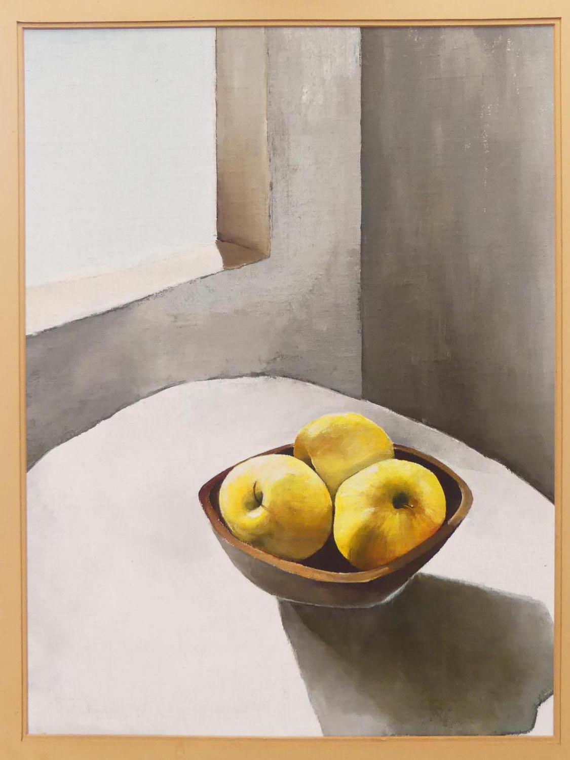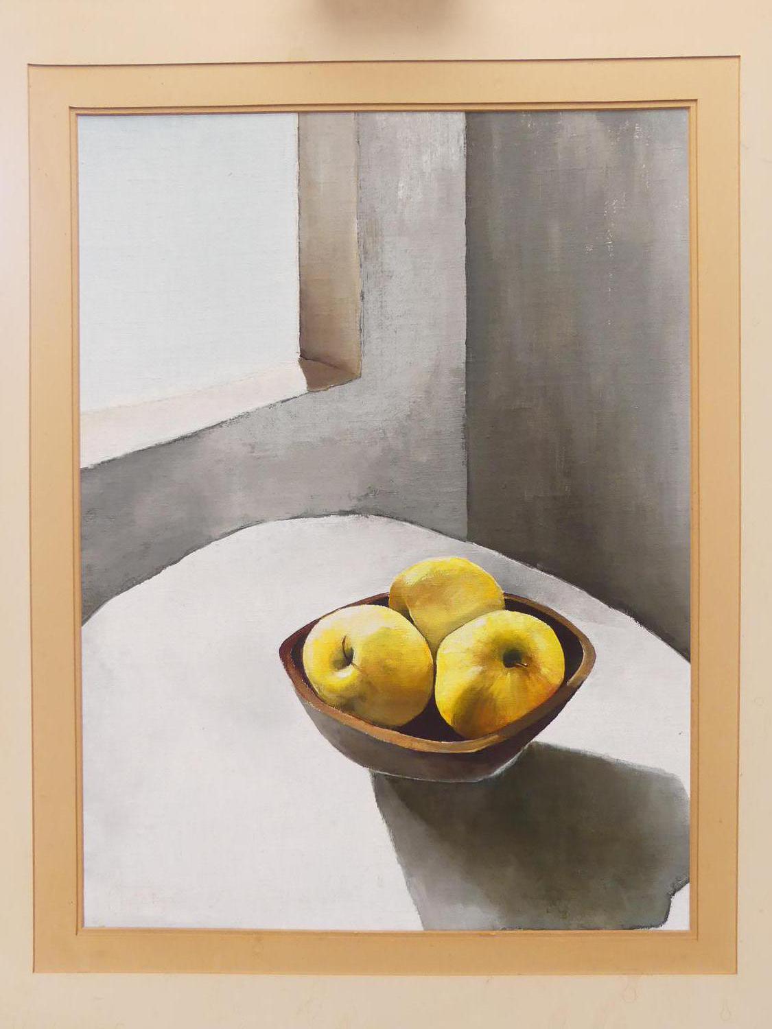 ****christina, acrylic on paper, 30" x 23", "stillife with apples"