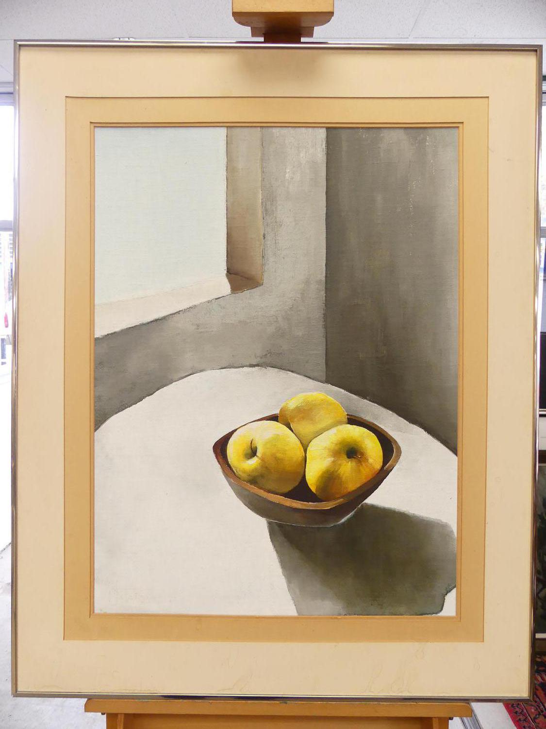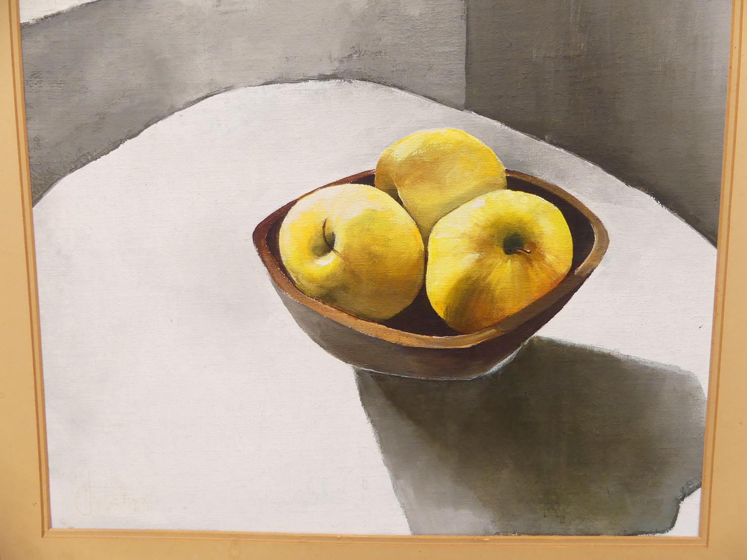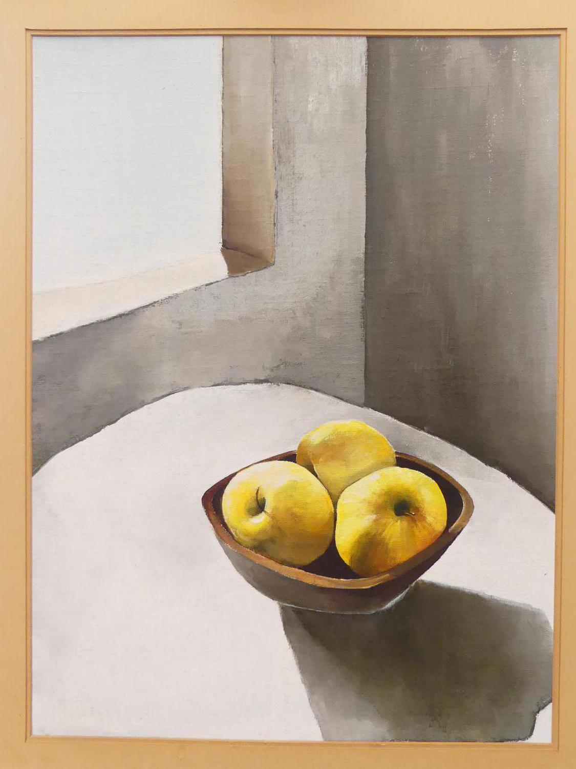 ****christina, acrylic on paper, 30" x 23", "stillife with apples"