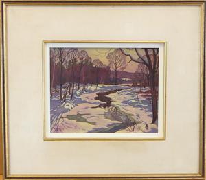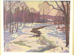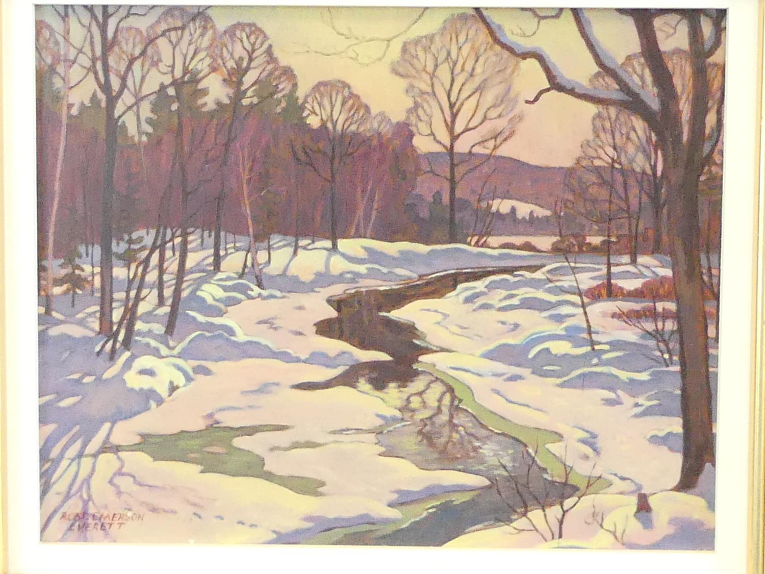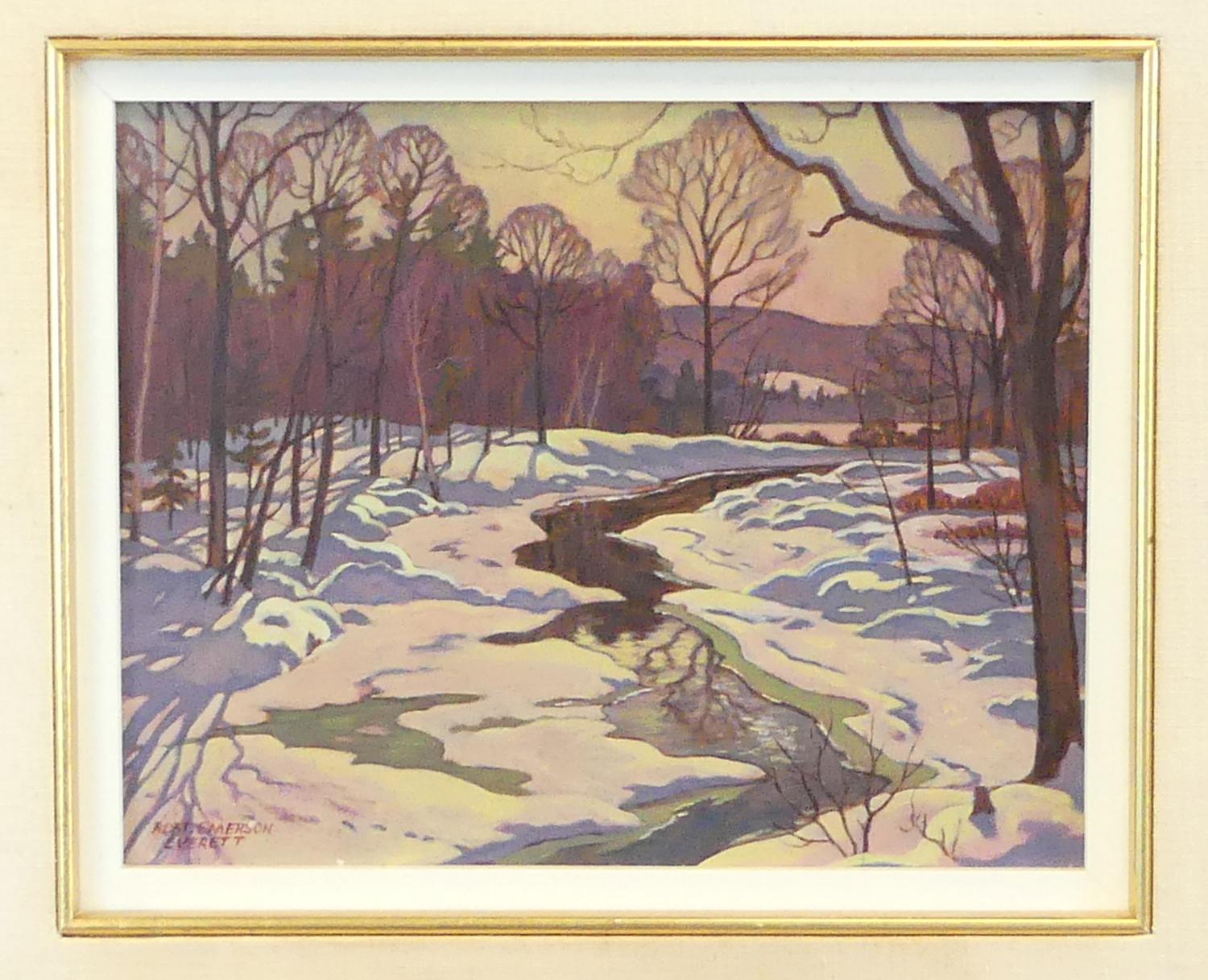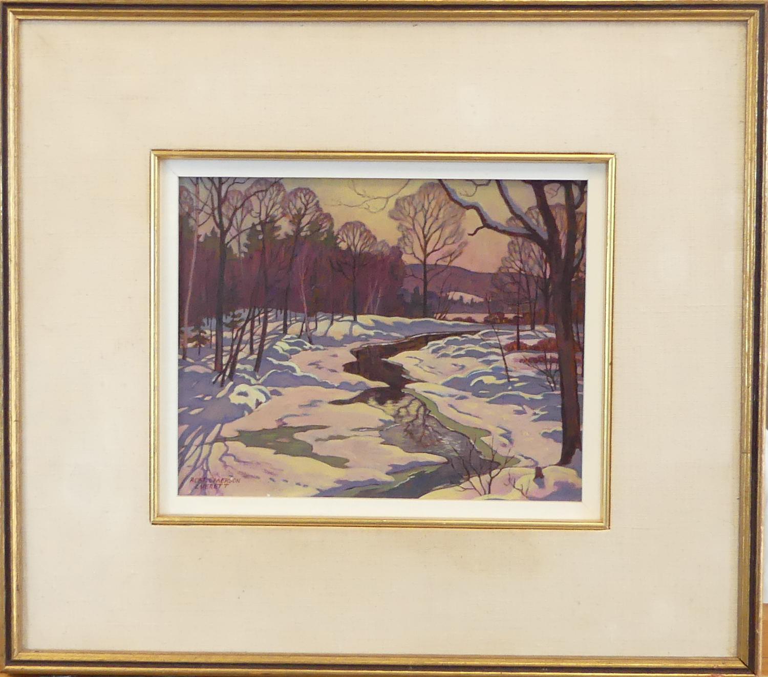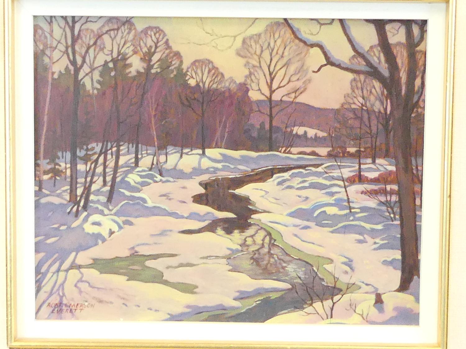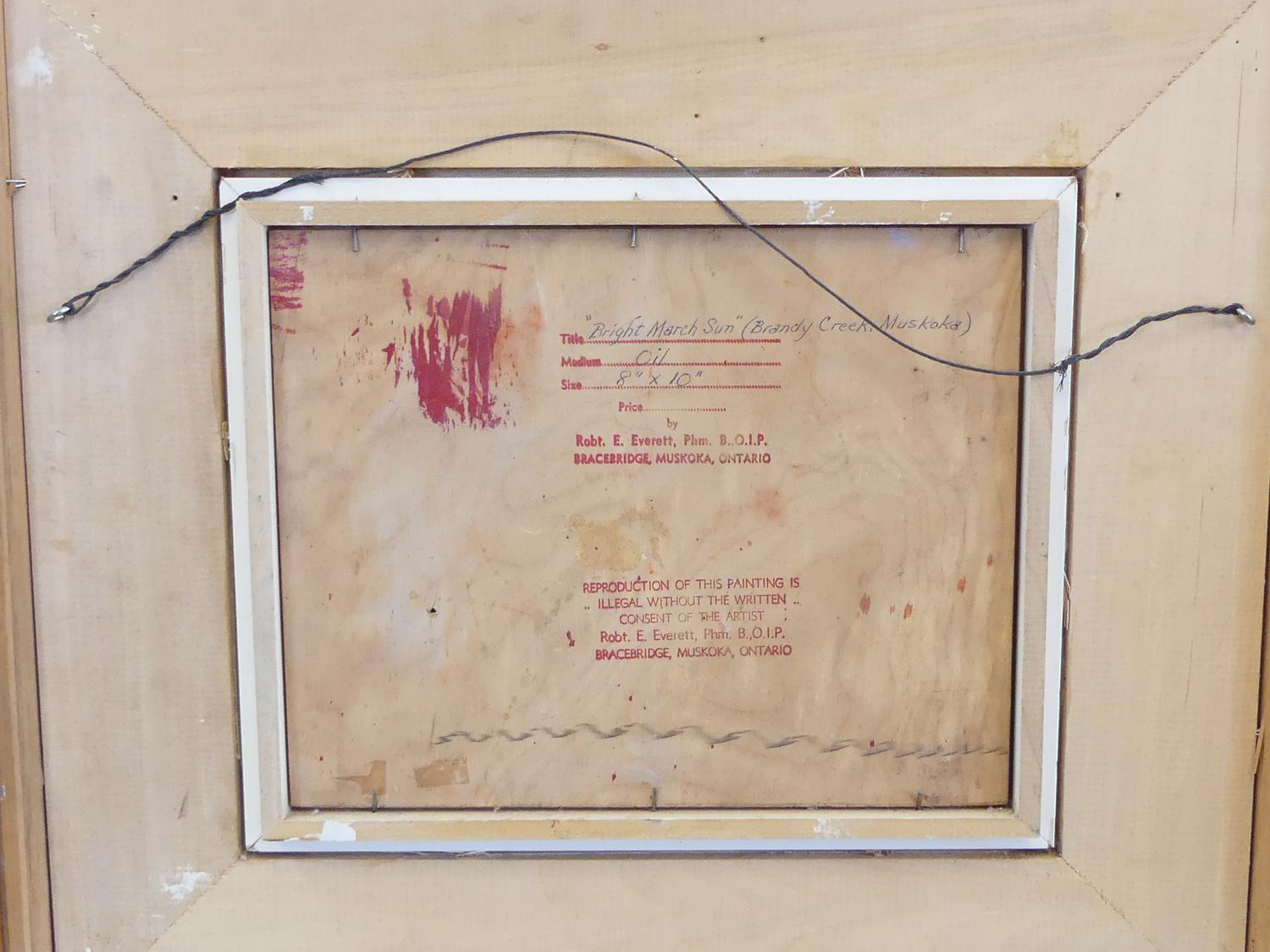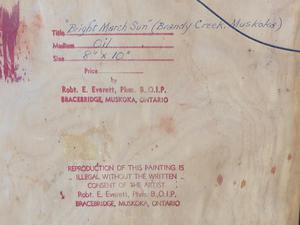robert emerson everett (1908-1994), oil on panel, 8" x 10", "bright march sun, brandy creek, muskoka"