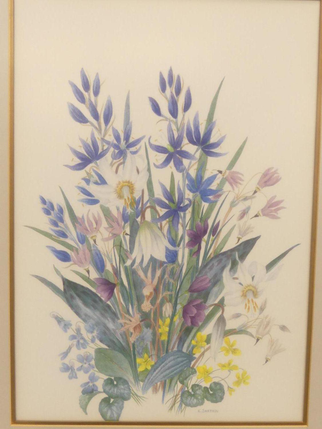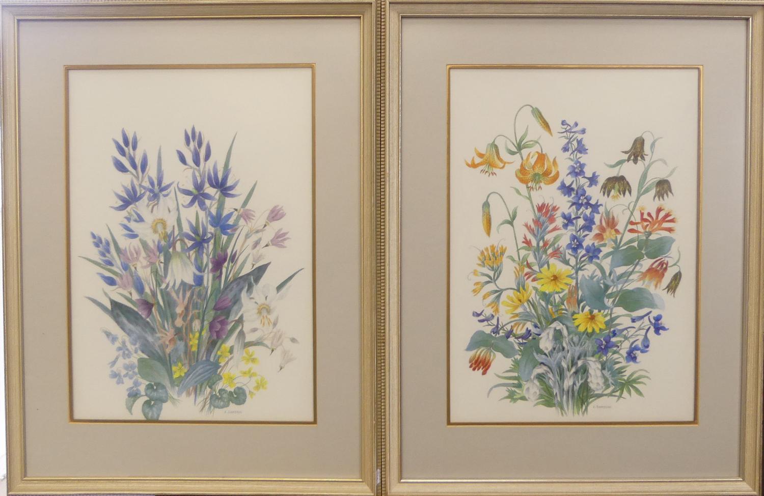 emily sartain (1903-1990), pair of watercolors, 18" x 13", "florals"