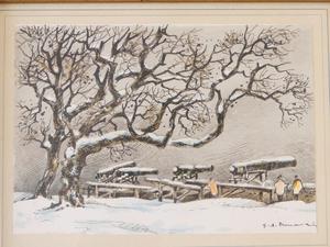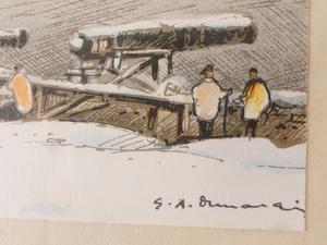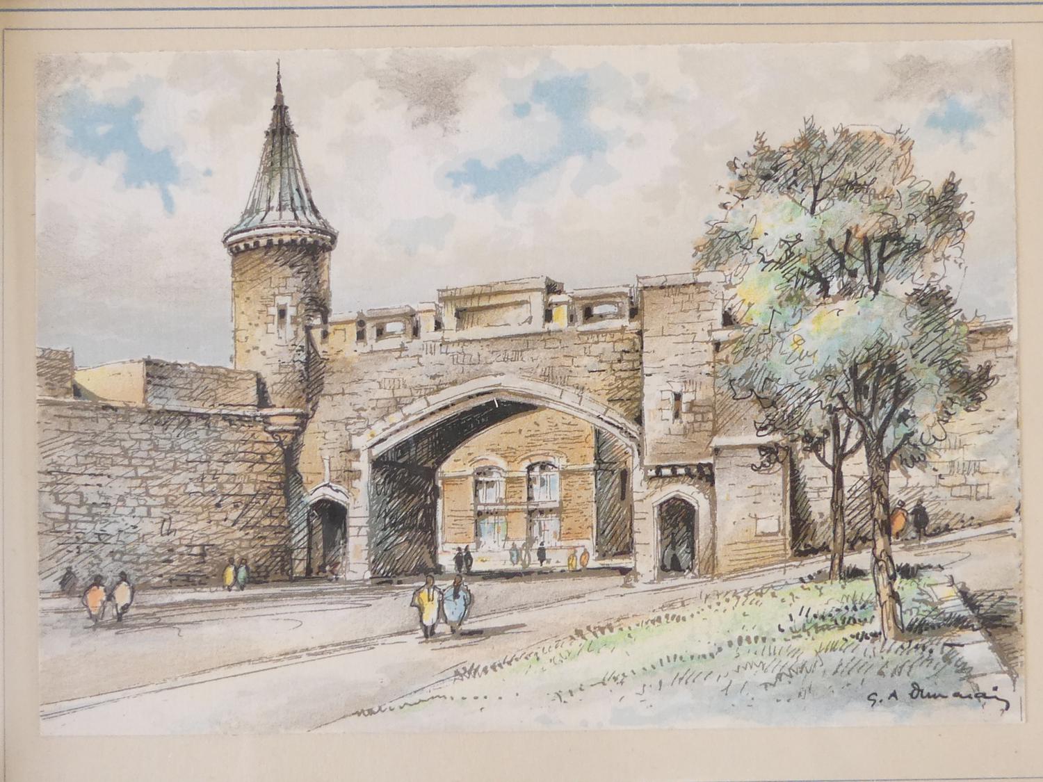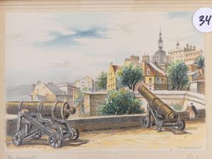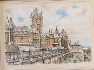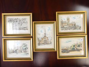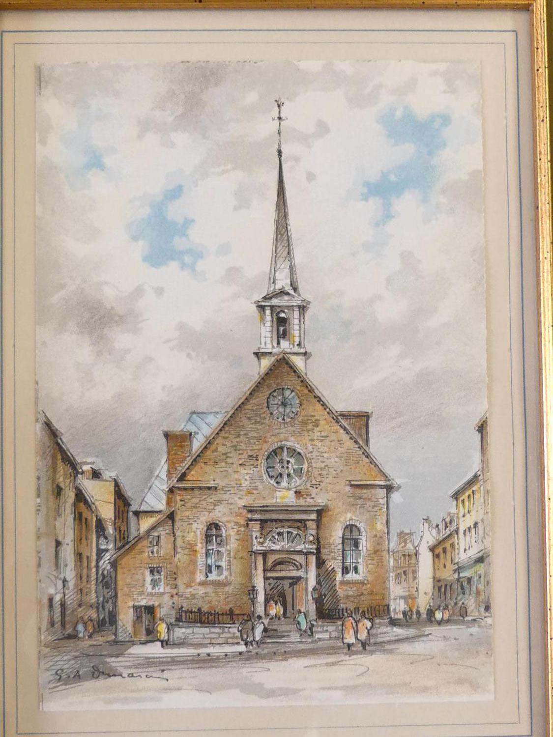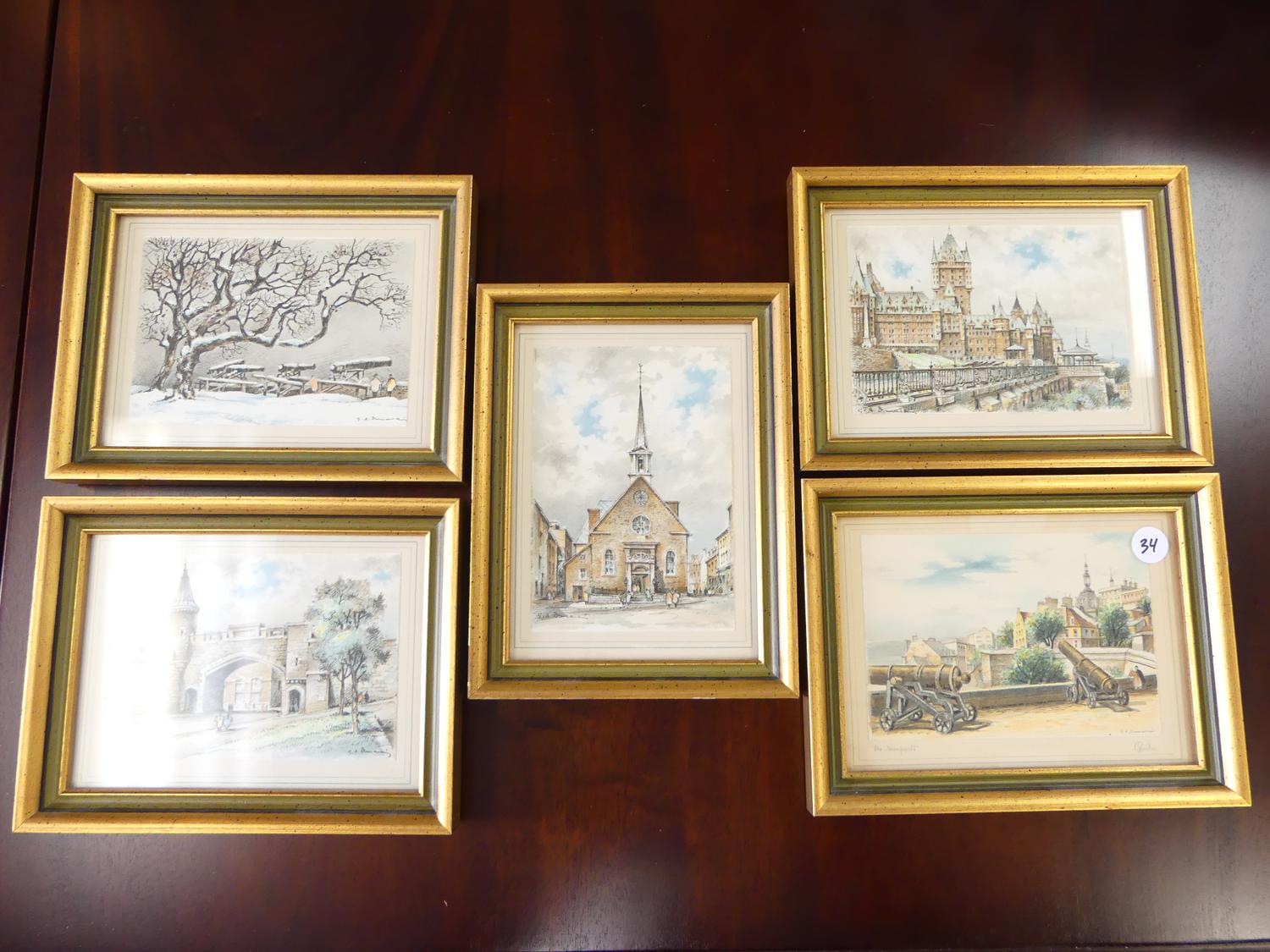 g. a. dumarais, c.1960, five ink and watercolour miniatures, 4" x 5 3/4", "quebec city scene"