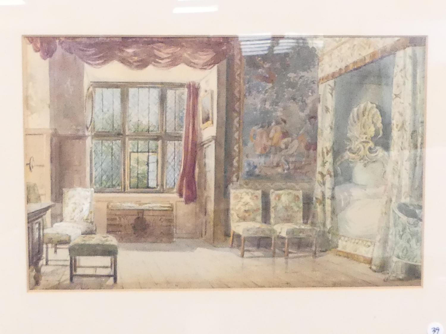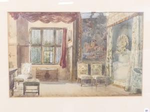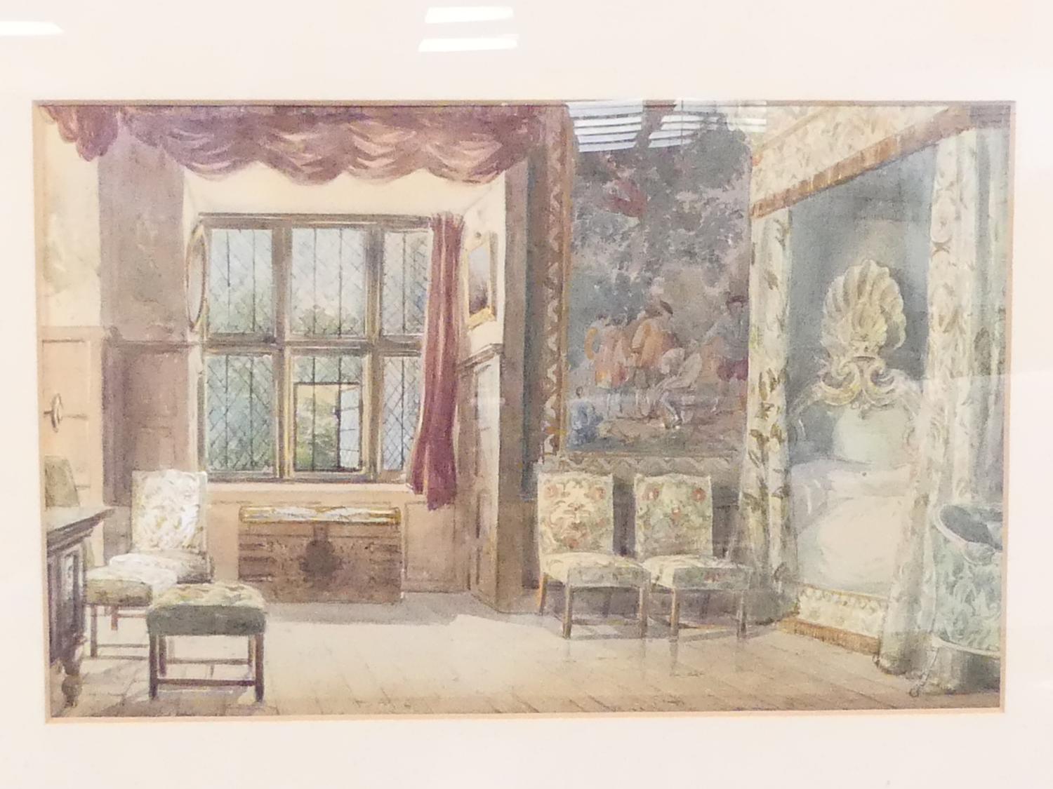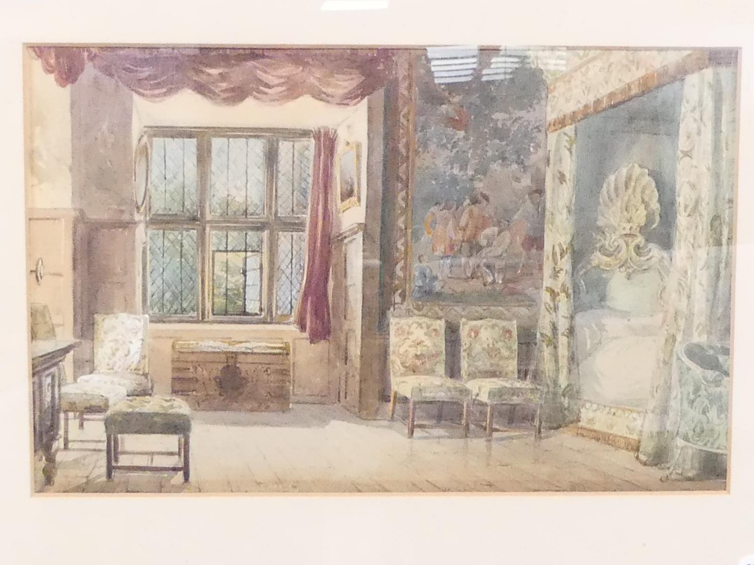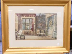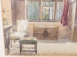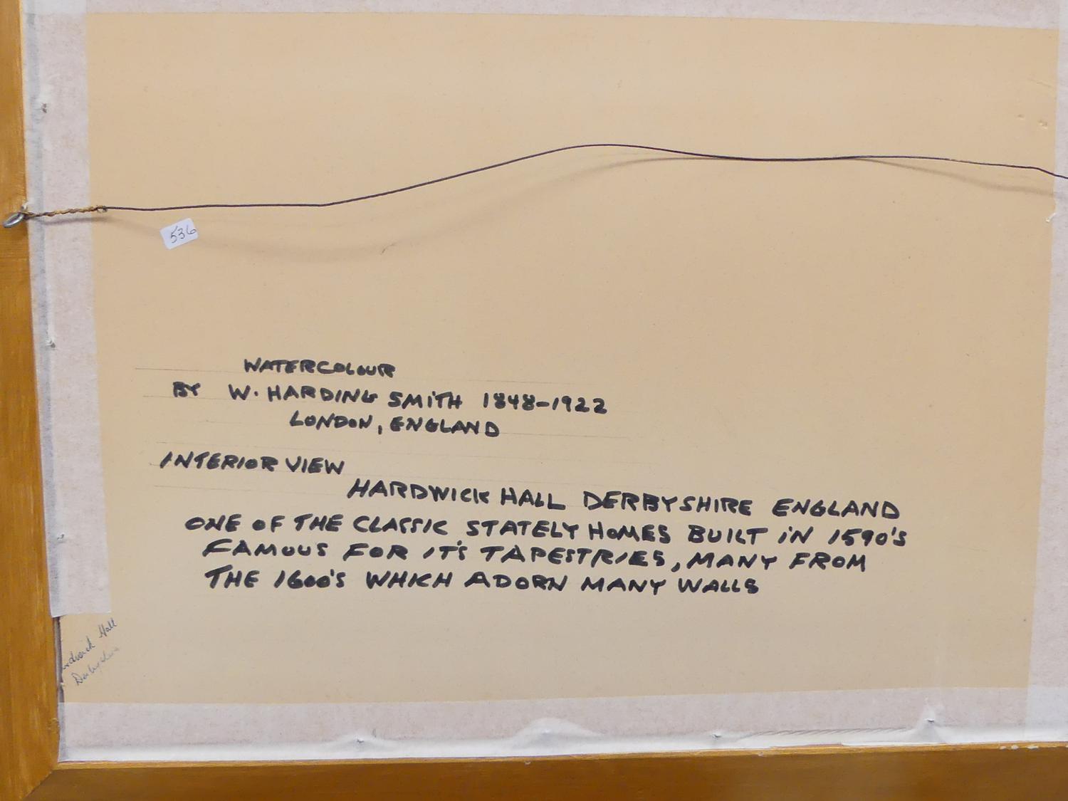 william harding smith (1848-1922), watercolour, 12" x 18", "interior study - hardwick hall, derbyshire"