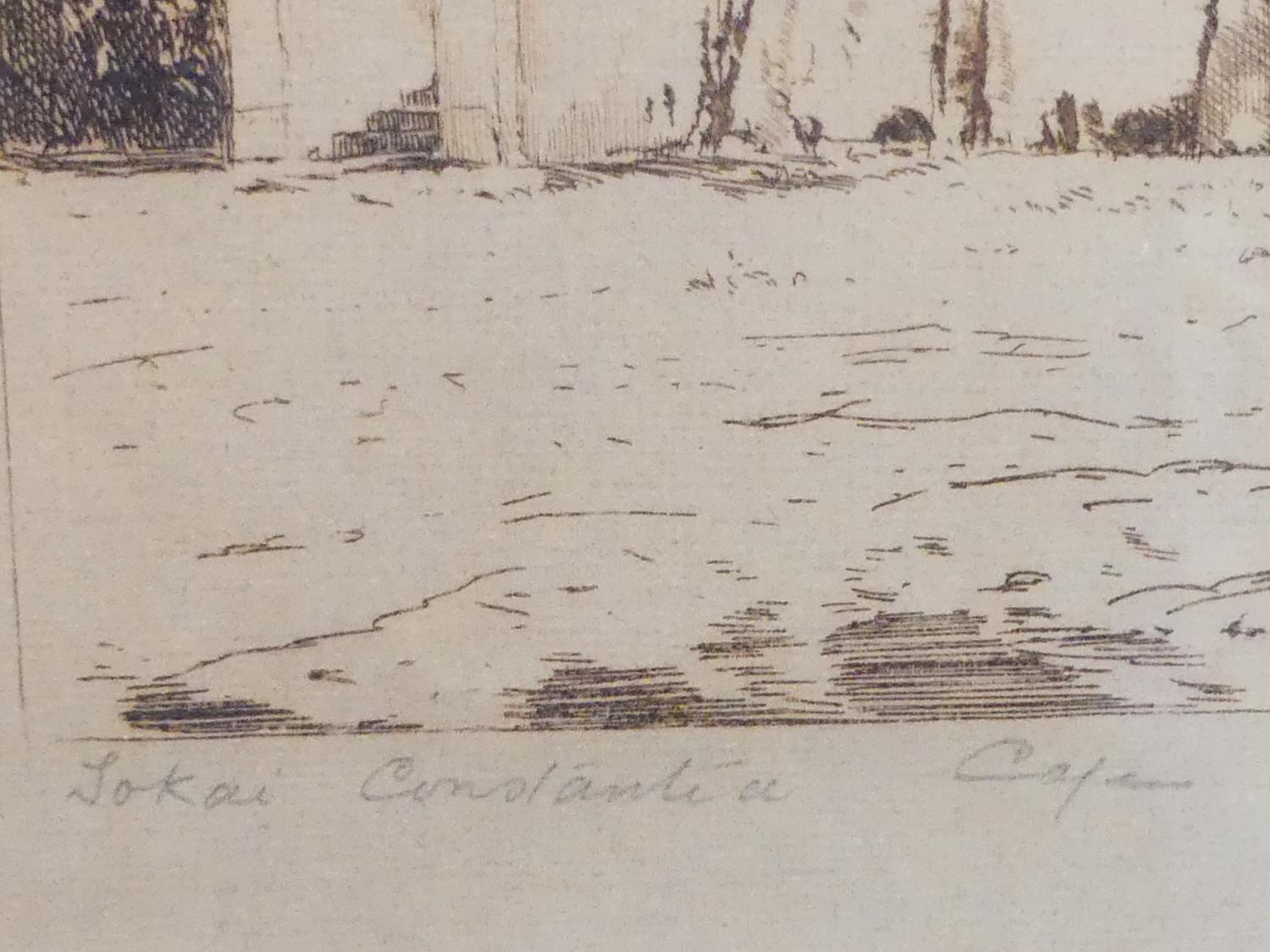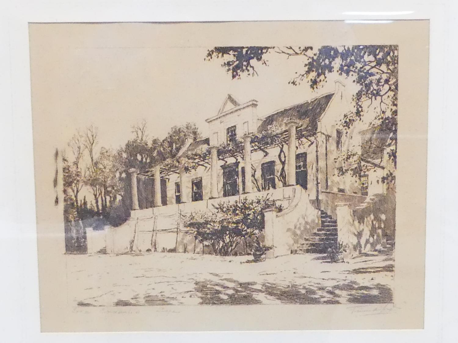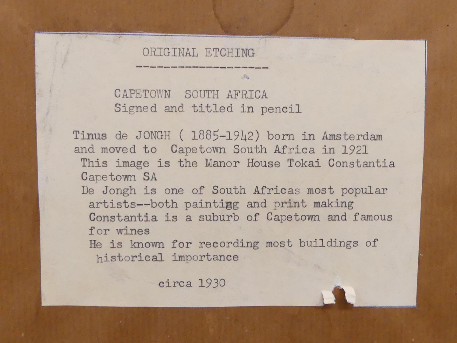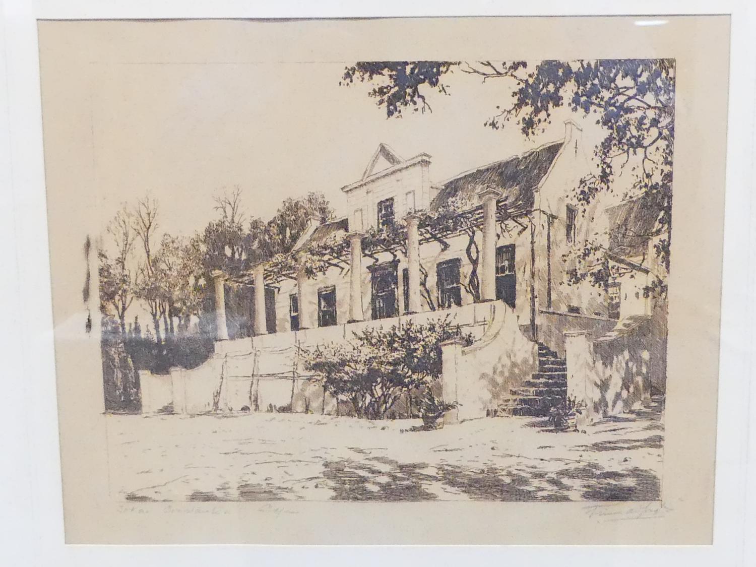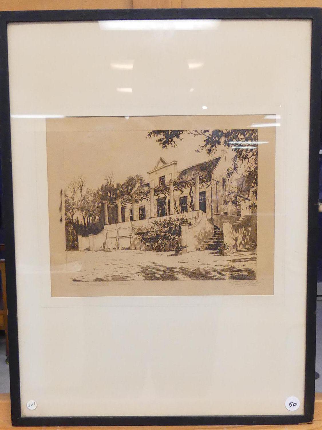 tinus de jong (1885-1942), etching, 7 1/4" x 9 1/2", "tokai manner house"