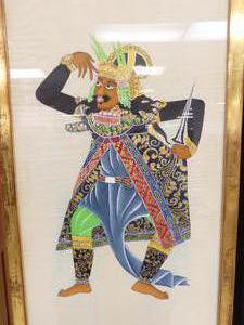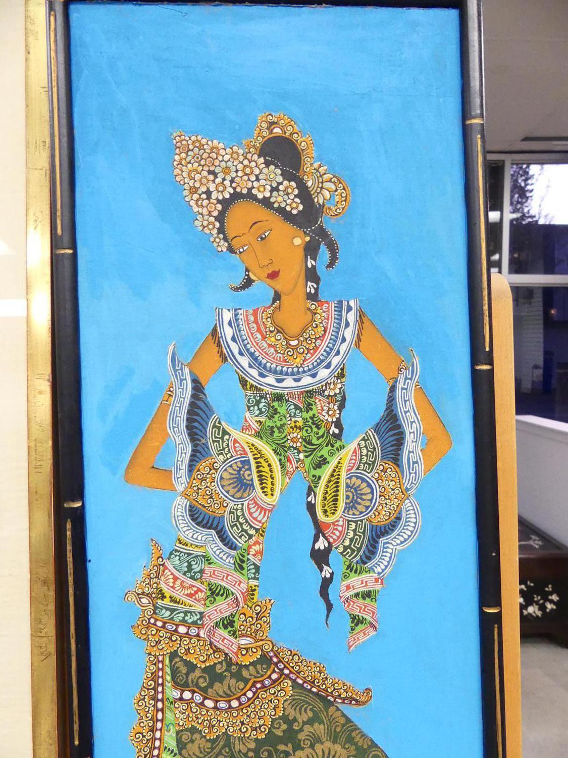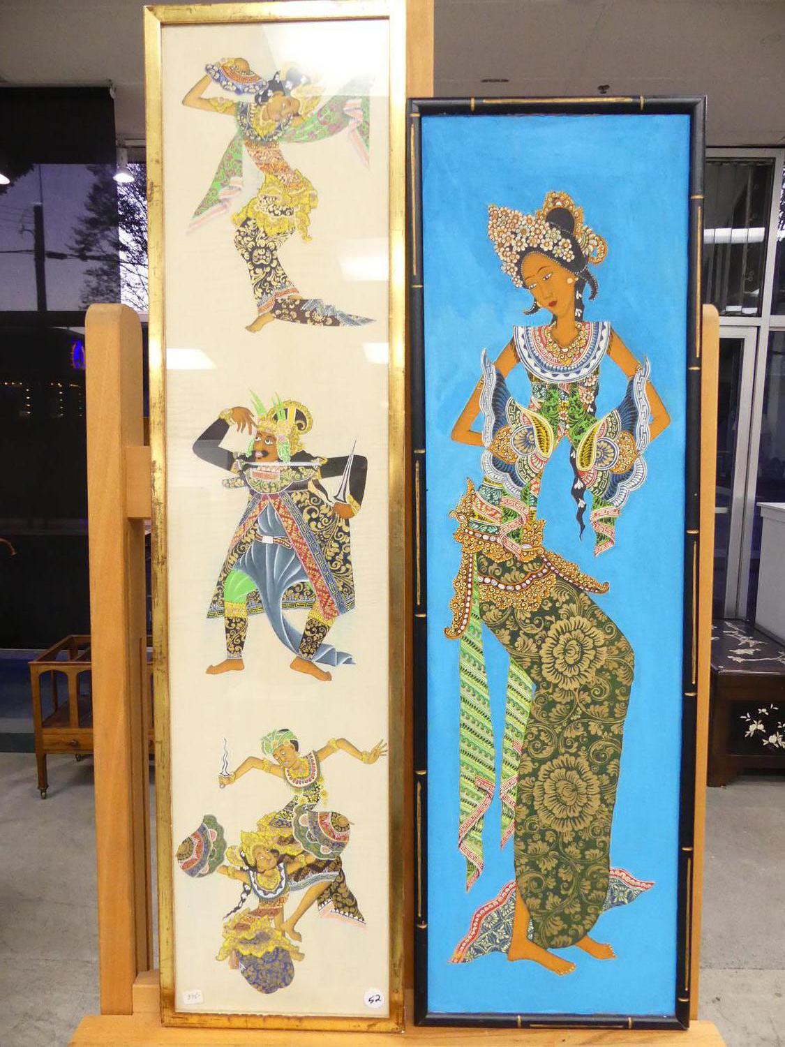 two indonesian paintings, 36" x 8", "figural studies"