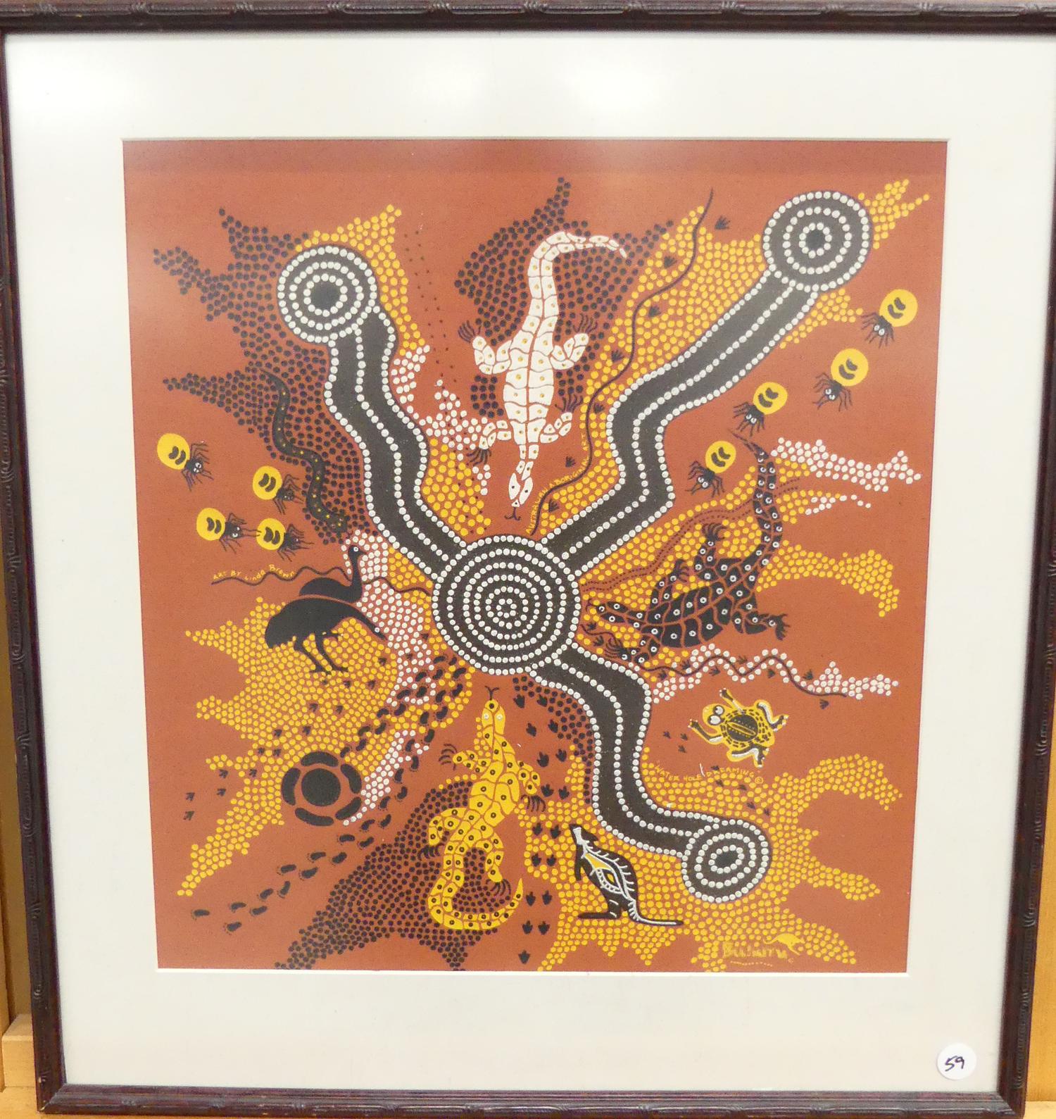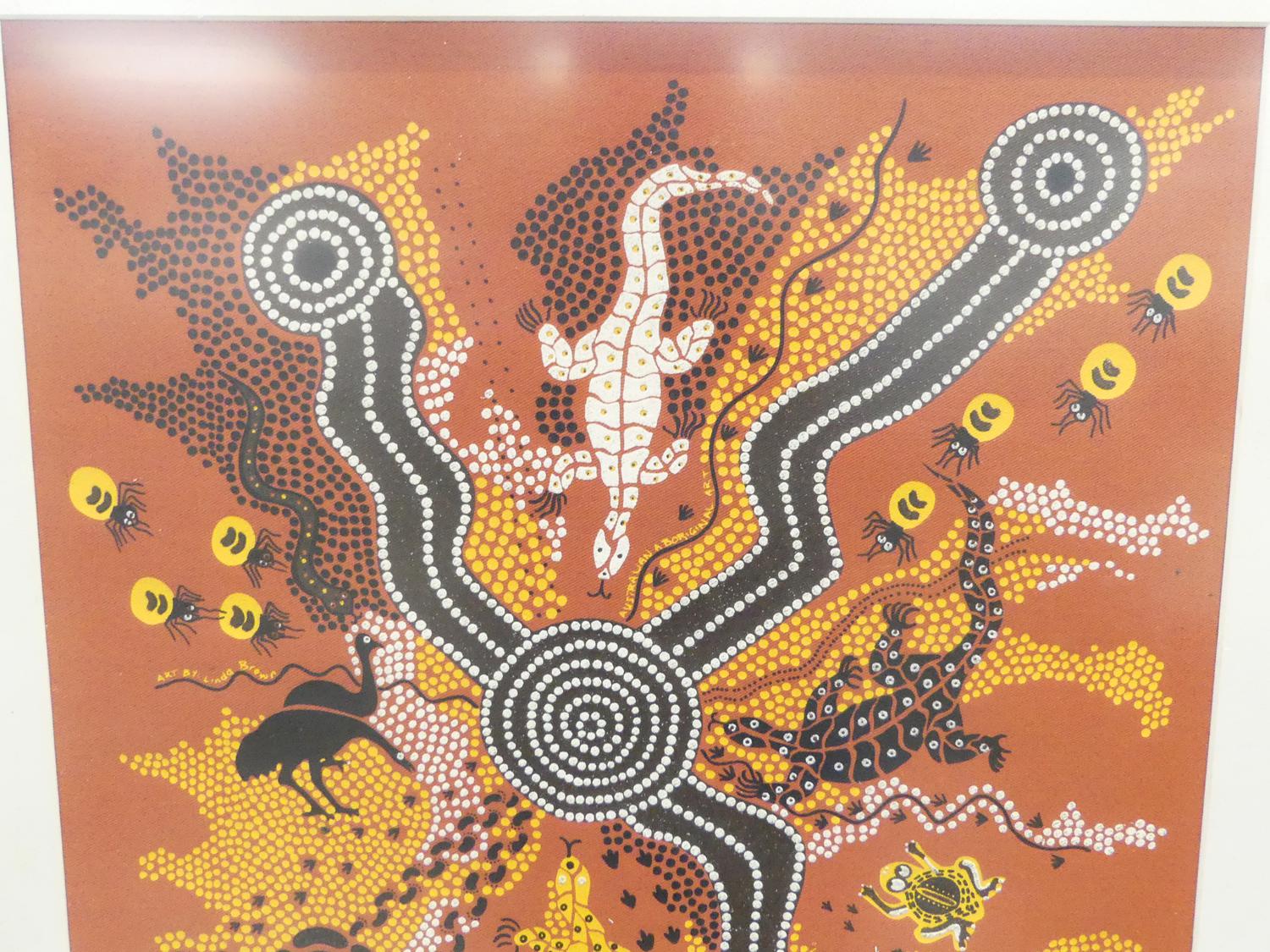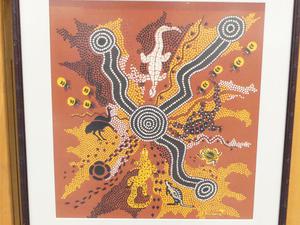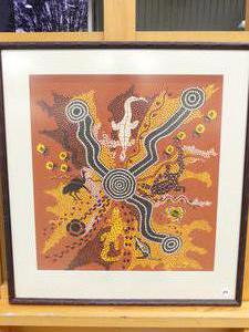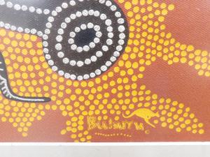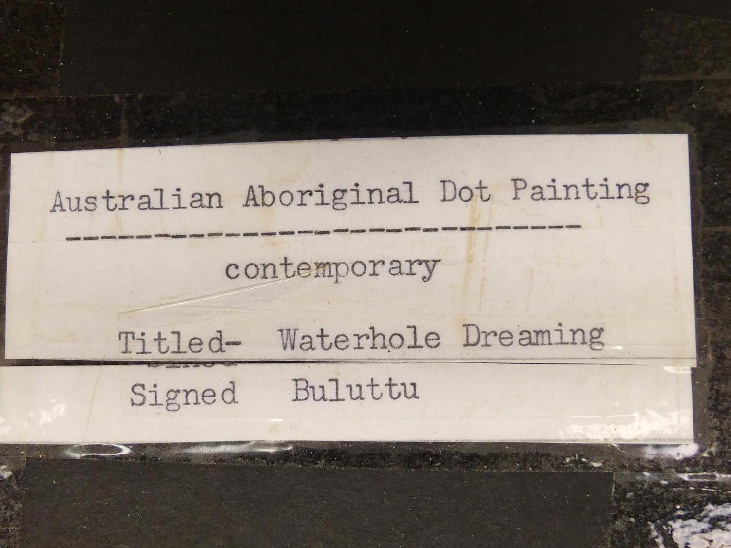 australian aboriginal dot painting, bulurru(australian art association of art), late 20th century, 15" x 14", "waterhole dreaming"