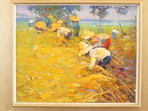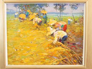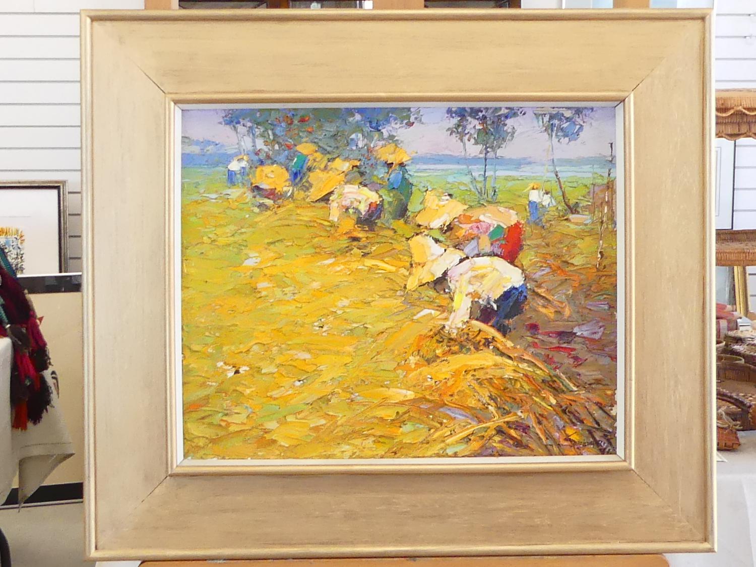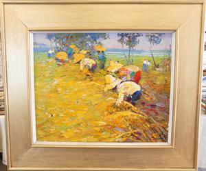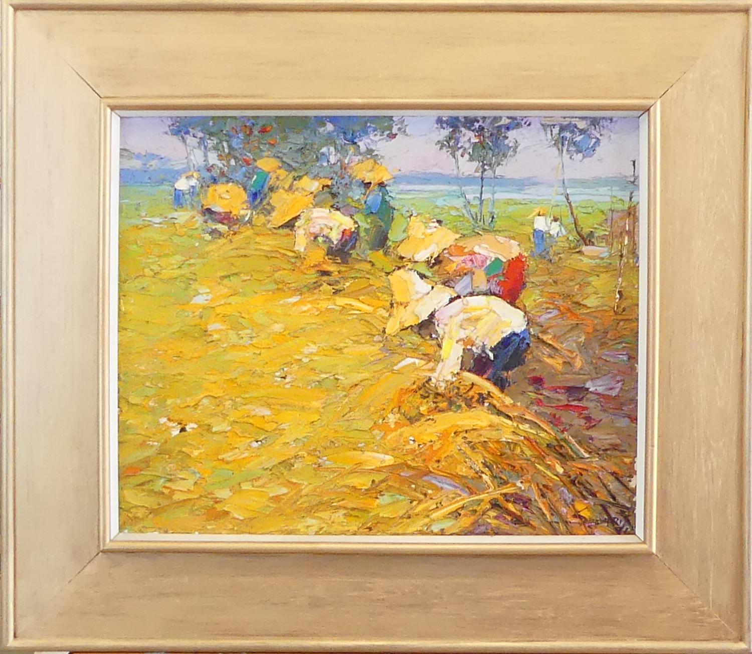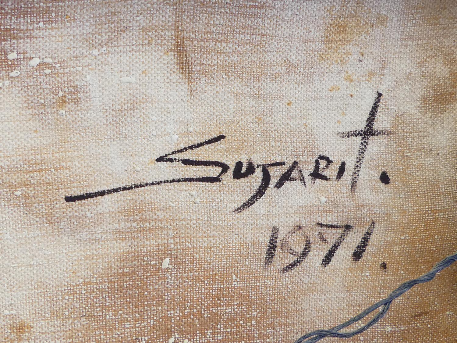 sujarit hirankul (1946-1982), oil on canvas, d.1971, 16" x 20", figures in field"