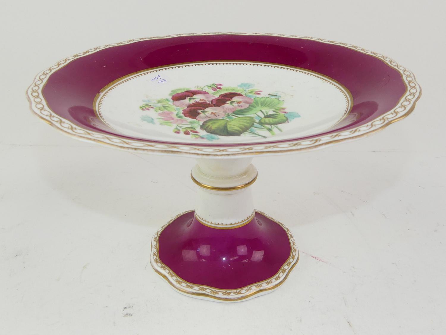 19th century hand painted comport, 5 1/2" x 9 1/4"