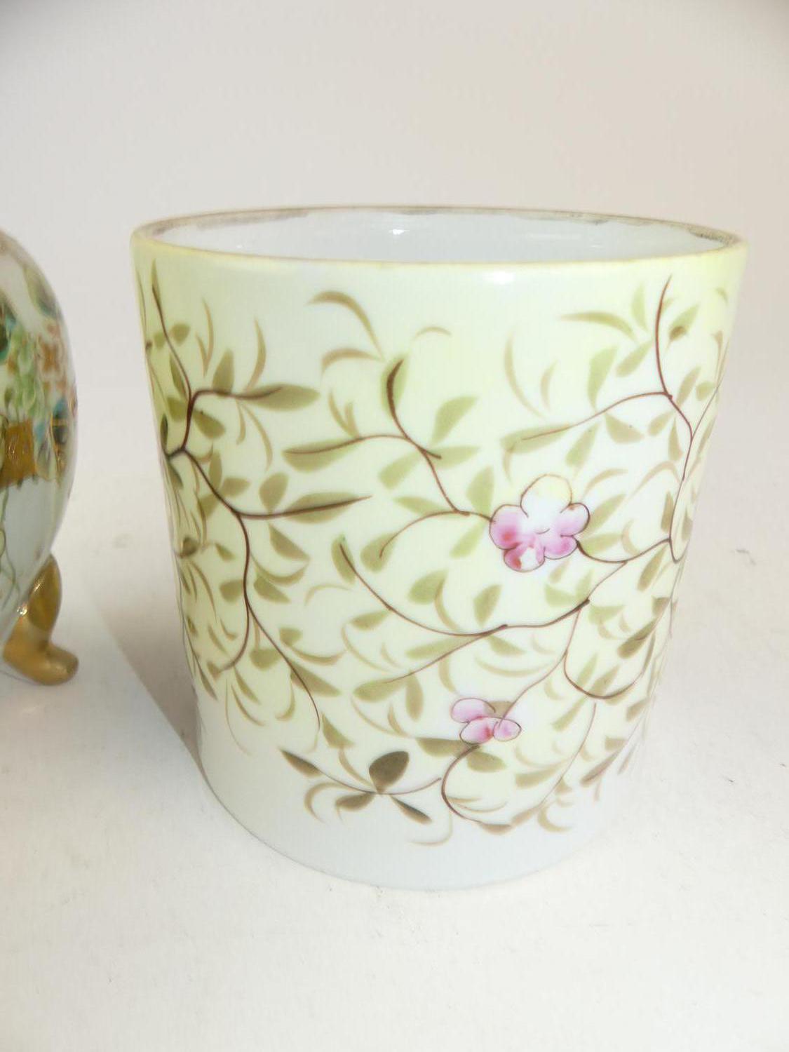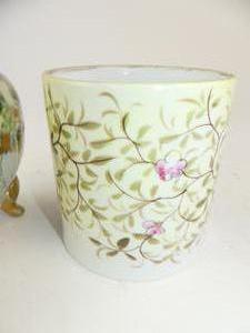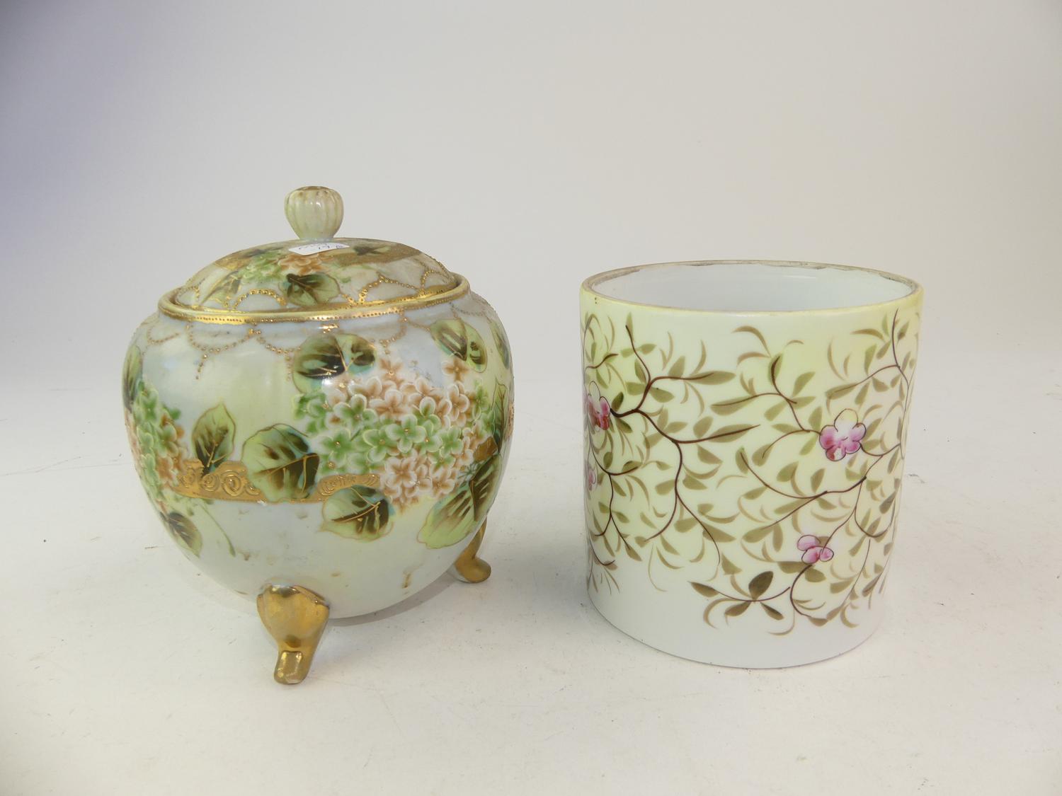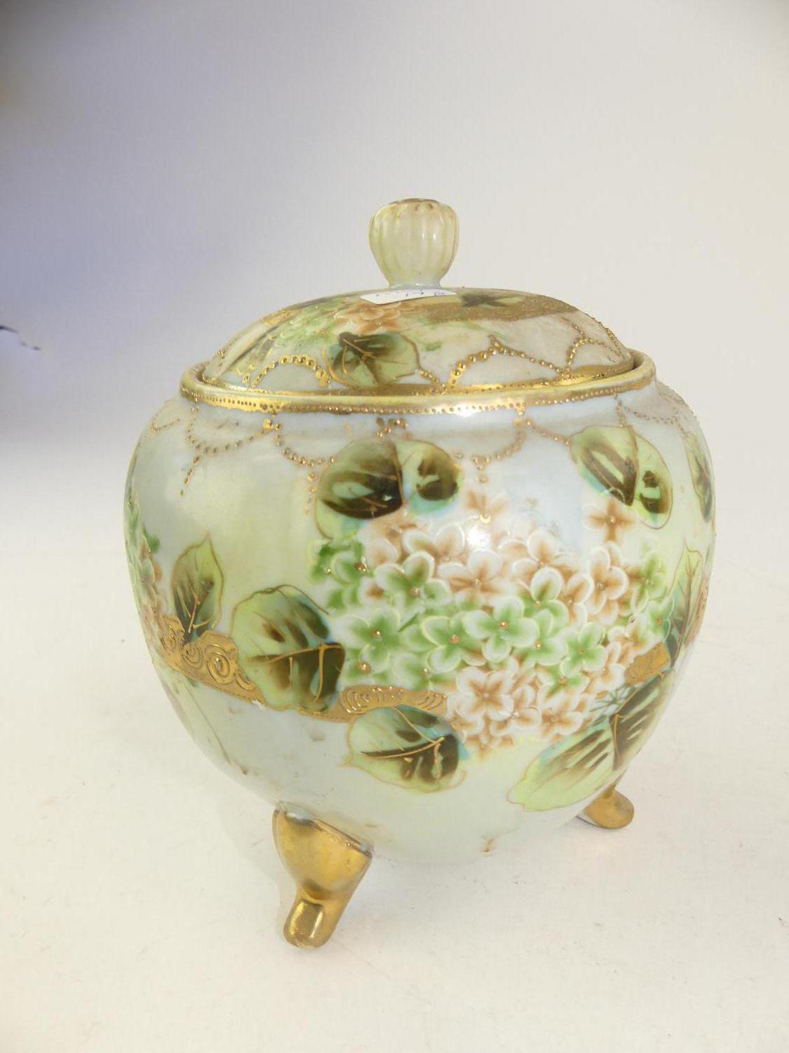 nippon covered footed vase with a handpainted pot, ht. 7"